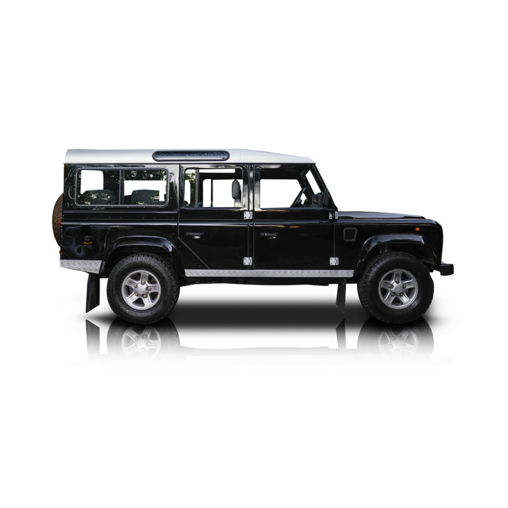 The exterior is finished in black, lending the Defender 110 a stealthy, purposeful presence that pairs well with its military-bred design. The body retains its iconic shape, complete with flat panels, flared arches, and exposed hardware that hint at its utilitarian roots. The long-wheelbase 110 configuration offers added cabin space and road presence, making it a popular choice for both overlanding and restoration projects. Inside, the cabin is trimmed in grey with classic utilitarian materials designed for function over frills.