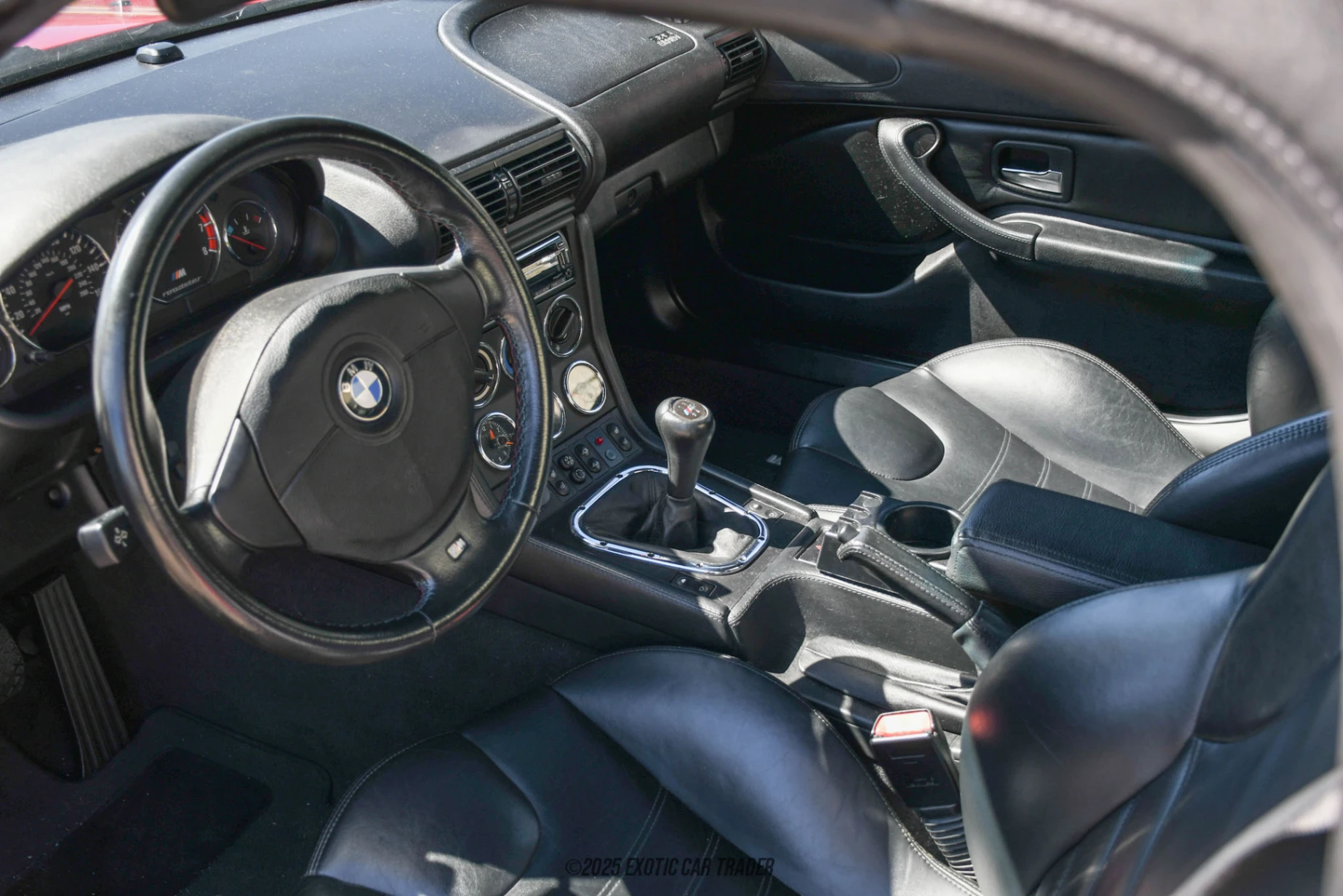 Under the hood is BMW’s 3.2-liter inline-six, renowned for its high-revving character and linear power delivery. Paired with a 5-speed manual gearbox, it sends power to the rear wheels, offering the classic front-engine, rear-drive layout that defines BMW’s golden era of sports cars. With a curb weight under 3,200 pounds, short gearing, and a firm M-tuned suspension, the Z3 M Roadster delivers sharp handling and a visceral connection to the road.