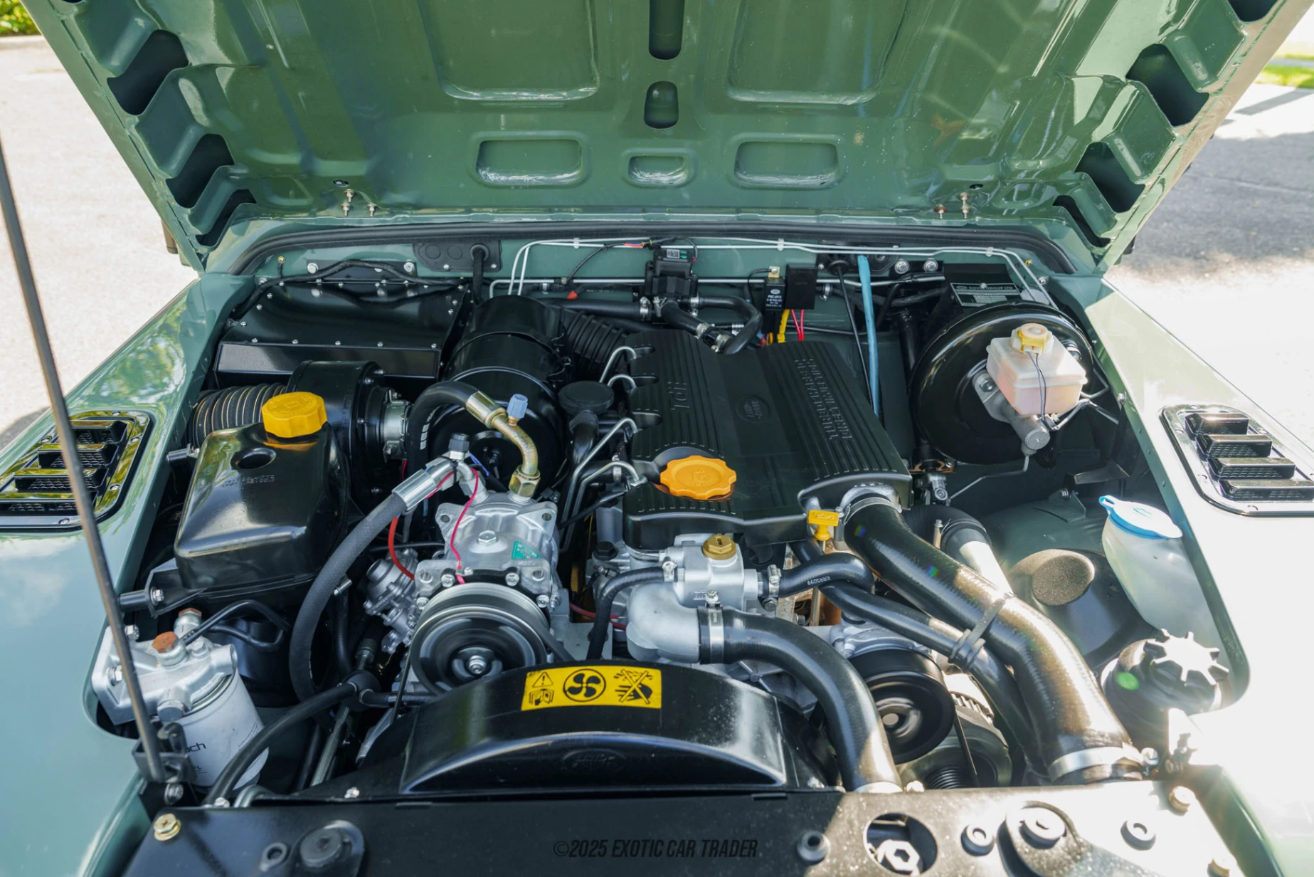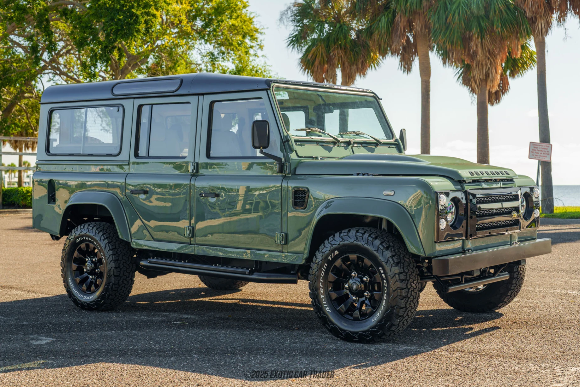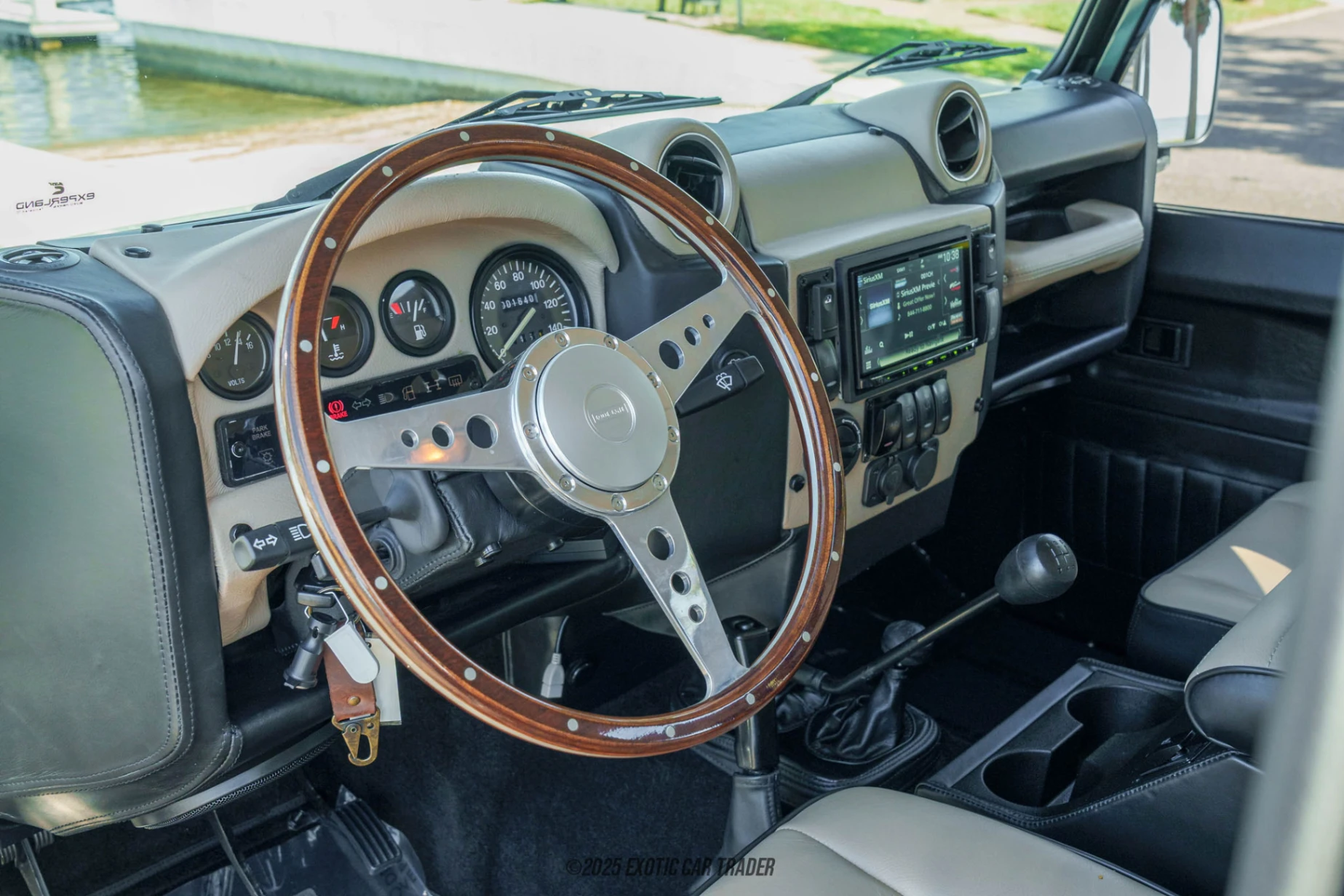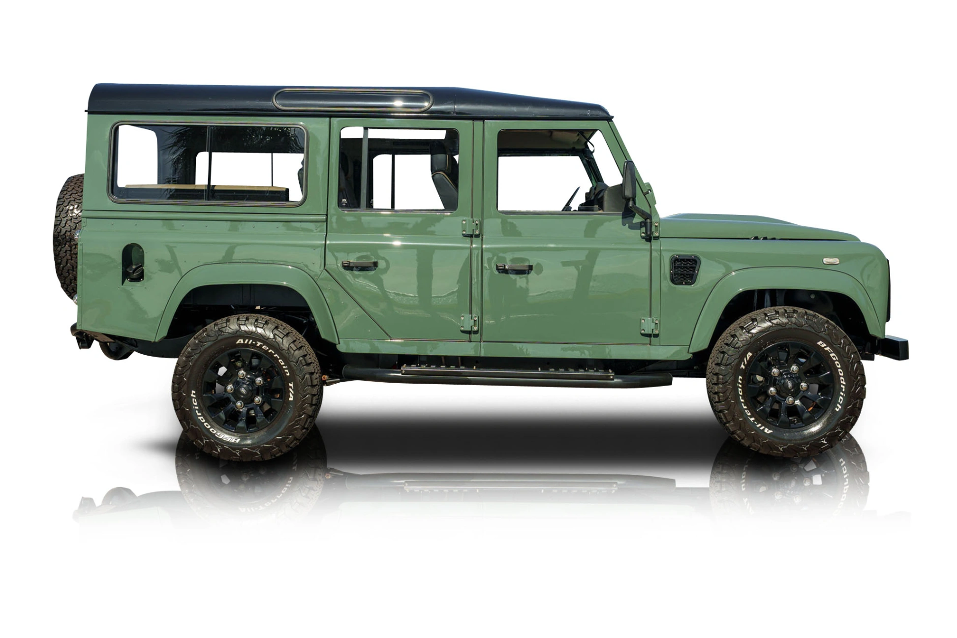 This 1998 Land Rover Defender 110 has received a nice outdoorsy shade of green paint, which really goes well with its Von Dur Urban Package, full LED lighting package and black alloy wheels. There are automatic door locks, as well as side and rear steps to aid entry and exit into the vehicle’s comfortable leather-lined interior. A black roof, all-terrain tires and replaced rubber seals are also included. Now let’s check out that lovely beige Italian hand-stitched custom leather interior. It’s superbly refined thanks to replaced exterior insulation, door shields, and even electric windows! You’ve also got a Pioneer audio system with CarPlay, a back-up camera, and upgraded speakers, including a subwoofer. There are cargo seats in case you need to carry more than four passengers, and since this is a left-hand drive example, driving it in North America is a cinch. Just take a few moments to truly appreciate the level of restoration that has gone into making this 1998 Land Rover Defender 110 near factory fresh. Everything, from the luster on the gauges to the clean dashboard all showcases the attention to detail that has been lavished upon this vehicle.