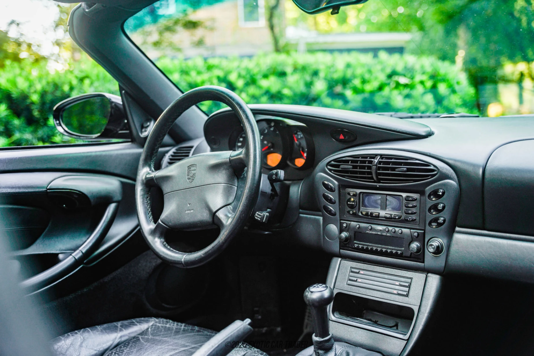 This fine first generation 1998 Porsche Boxster comes to you in black, highlighting its simple yet attractive design, its compact dimensions and of course, its definitive Porsche cues. The car features a black canvas top that can be lowered via a switch in the center console for that signature roadster experience. Then, it’s got a set of silver five double spoke alloy wheels with the iconic Porsche crest on the center caps. Even the headlamps mimic those of the 911 in a way. The interior of this 1998 Porsche Boxster is strictly a two-seat affair, as the Boxster doesn’t compete with the larger and more spacious 911. It’s also got a three-dial instrument binnacle, rather than the five-dial unit in a 911. However, you don’t give up on interior amenities. The black leather seats are supremely comfortable and supportive under spirited driving. There’s automatic climate control with air conditioning, as well as a Porsche radio with CD player. The car even features cruise control for those long highway drives.
