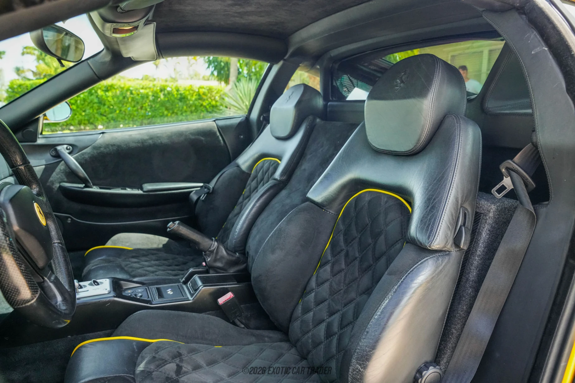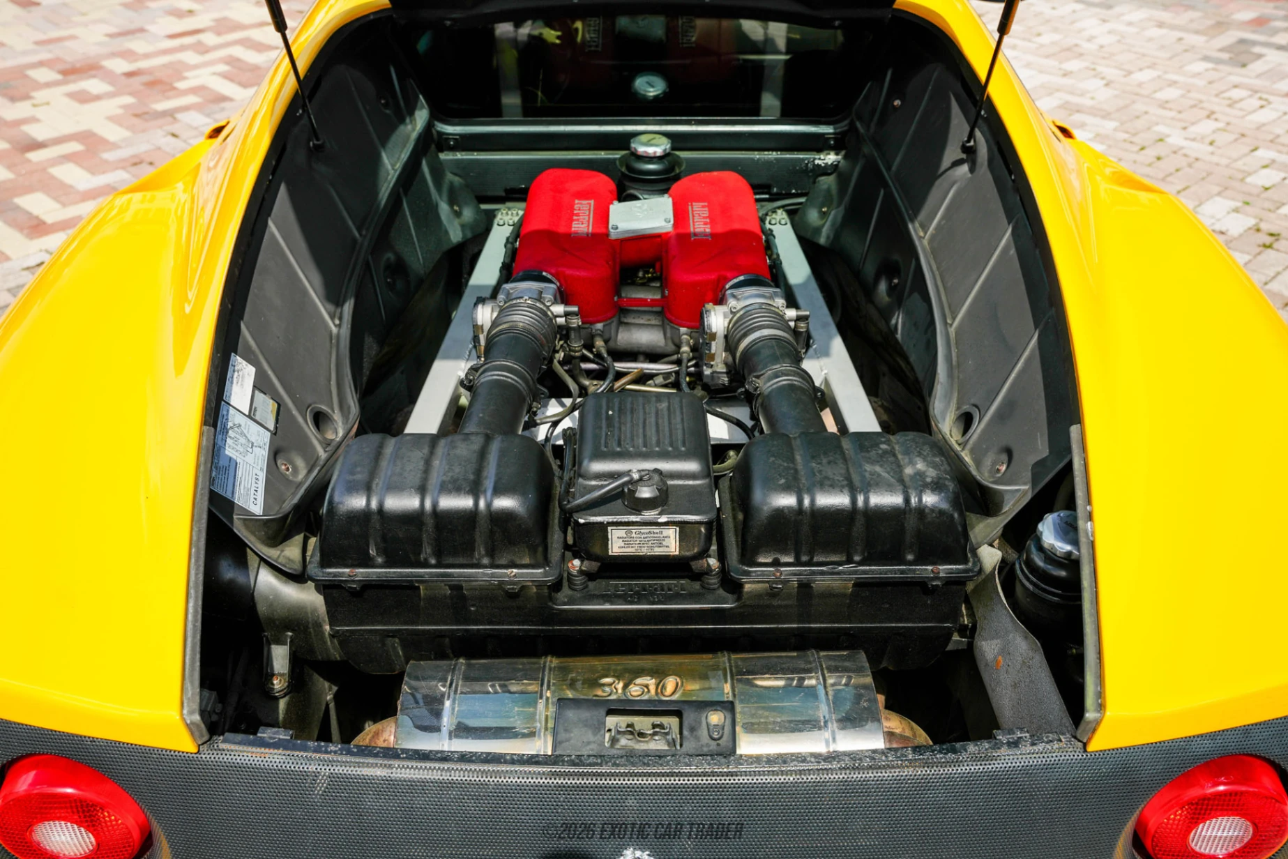 Ferrari’s famous searing bright yellow is called Giallo Modena, and it’s the same shade that is used for the background of their iconic Prancing Horse emblem. It’s thought that after the popular Racing Red or Rosso Corsa, Giallo Modena is the next popular bright color choice by Ferrari buyers. And you can see why, with how it looks on this 1999 Ferrari 360 Modena. The car will catch onlookers’ eyes, as well as your own, regardless of where you park it. Plus, its clean and timeless Pininfarina design, silver five-spoke alloy wheels and quartet of circular taillamps make it a joy to behold. Of course, there’s also a quartet of exhaust pipes for that soulful V8 to sing through. The interior of this 1999 Ferrari 360 Modena is a two-seat affair. It’s got a nice suite of analog dials, including a 10,000rpm tachometer and a 220mph speedometer. The car also has power windows, power mirrors and automatic climate control. Its original but now dated Ferrari radio has been swapped out for a suitable Alpine head unit that brings a CD player and a USB port to the party, ensuring that you can still enjoy your music of choice.