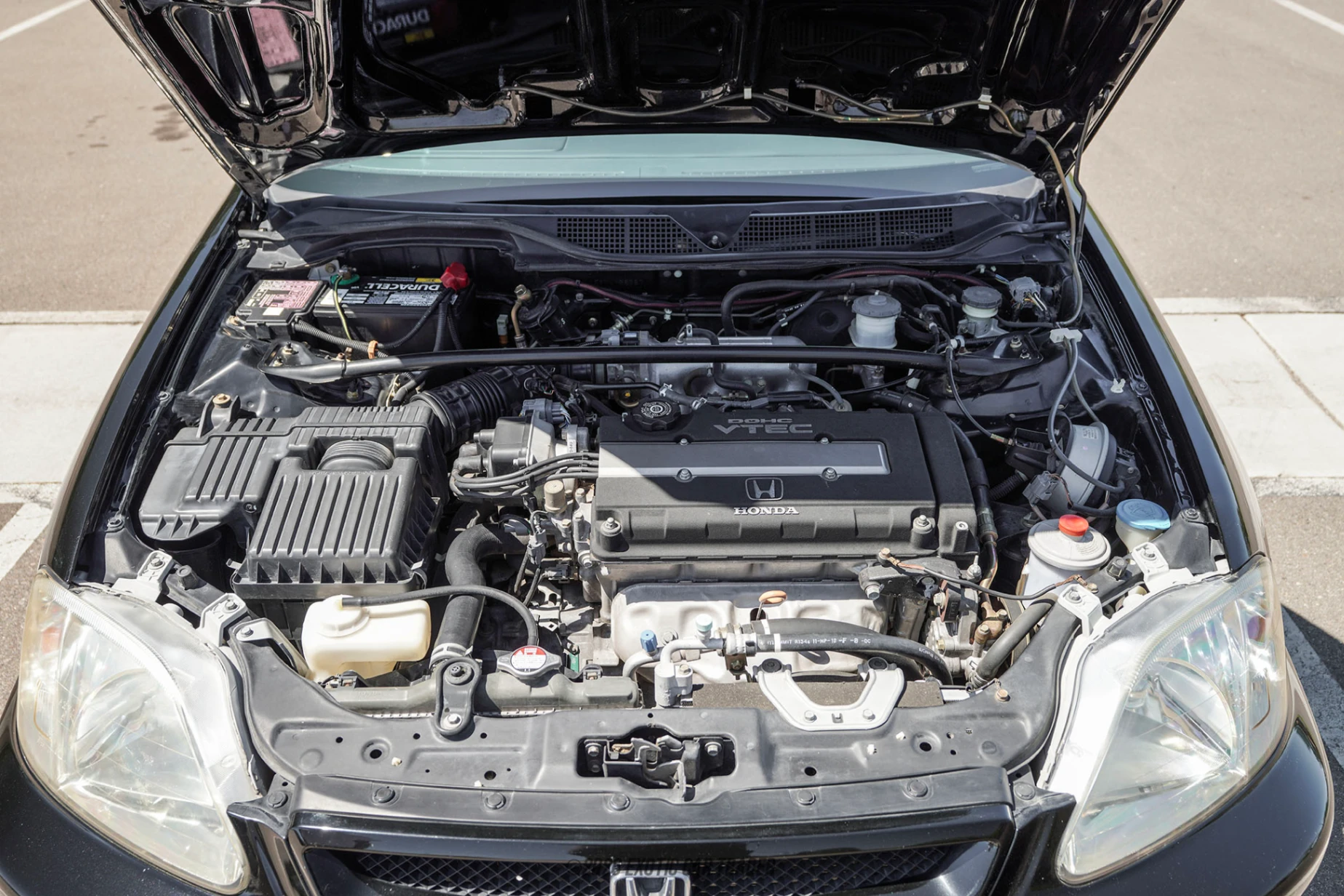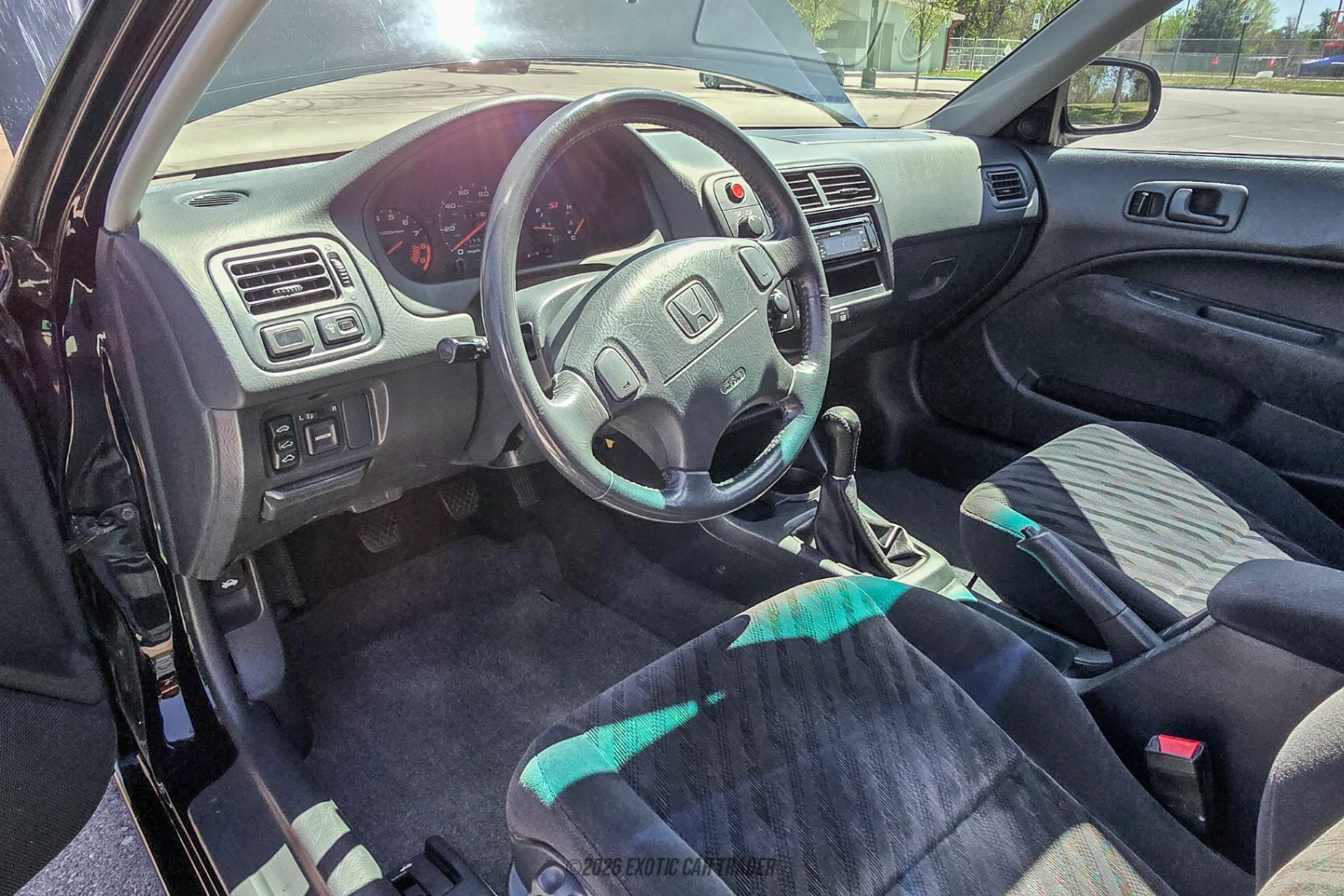 At the heart of this Civic Si is the legendary B16A2 1.6L naturally aspirated inline-4 engine, equipped with Honda’s DOHC VTEC system. Known for its high-revving nature and engaging power delivery, this engine comes alive at higher RPMs, delivering an exhilarating driving experience that rewards driver input. Paired with a precise 5-speed manual transmission and a factory limited-slip differential, power is sent to the front wheels with excellent control and responsiveness. Combined with its lightweight chassis and double wishbone suspension, the EM1 Civic Si remains one of the most engaging front-wheel-drive platforms ever produced.