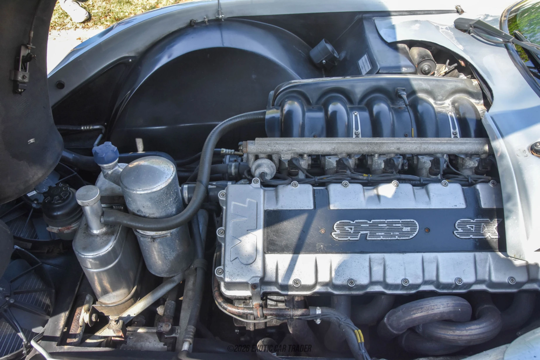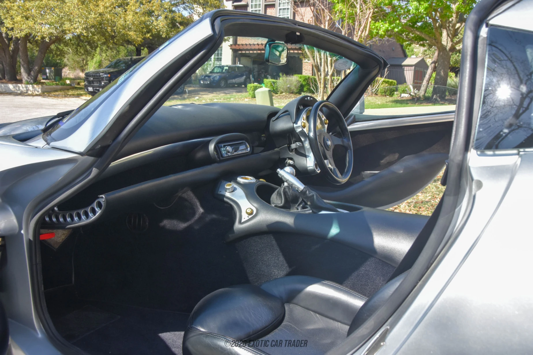 TVR styling from the Nineties and Two Thousands is really something, because that’s when the brand decided to become rather flamboyant. That’s what you get with this sleek Silver SpectraFlare 2000 TVR Tuscan Speed Six. The car rides on a set of simple silver alloy wheels because it doesn’t need anything else to add to its flair. Just look at those sculpted lines, the array of frontal lighting elements, the bulbous rear, taillamp clusters and twin exhaust pipes. This car also has a removable roof panel in targa top style which elevates its thrill factor through the roof, literally! The black interior of this 2000 TVR Tuscan Speed Six is pure British hand-built glory right there. Just look at those metal pedals, gold-colored air conditioning control knobs and that exciting semicircular 200mph speedometer! You’ve also got an Alpine radio with USB input for music. Two well-bolstered leather-upholstered seats hold the driver and passenger in place during spirited driving, which is basically how you’d drive this car most of the time. It doesn’t really do dawdling, you see.
