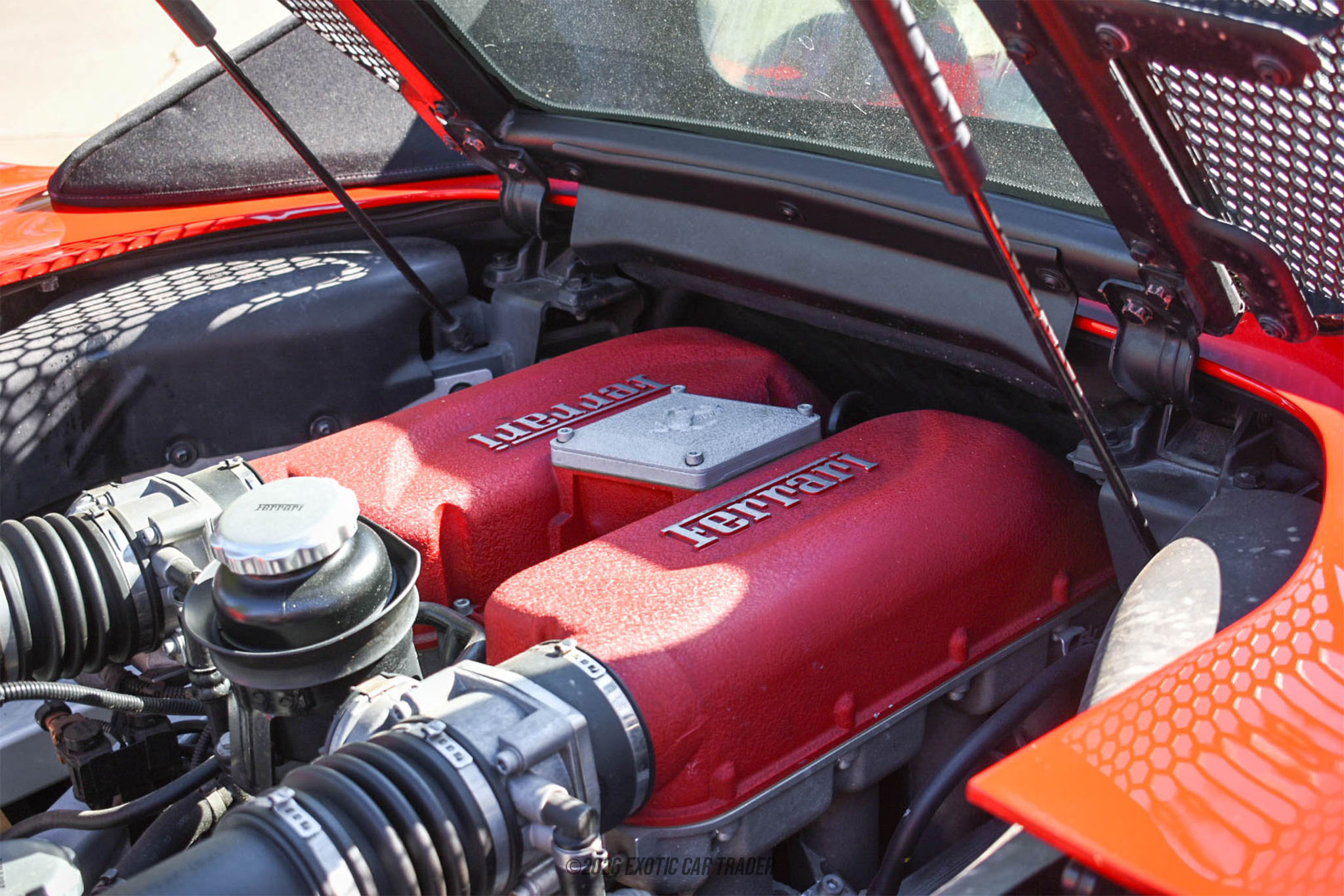 Intended to replace the F355, the Ferrari 360 was an all-new design. Those sleek lines are the work of Pininfarina, while beneath the alluring Rosso Corsa paintwork of this 2001 Ferrari 360 Spider lies an aluminum space-frame chassis that is 40% stiffer than the F355’s. Scuderia Ferrari shields adorn the car in key places, but the design alone is enough of a calling card. Ditto the silver five-spoke alloy wheels that, even if you were to remove their Ferrari-branded center caps, would still be recognized as Ferrari units. And since this car is a Spider, it’s got a powered convertible top as well. The two-seat interior of this 2001 Ferrari 360 Spider comes in black and offers some decent creature comforts, enabling this car to easily become your daily without much sacrifice. There’s automatic climate control, power windows, power mirrors and power door locks. The radio is now an Alpine unit that supports Bluetooth, as well as USB and AUX connections. But you don’t buy a Ferrari just for its radio or air conditioning system. And that’s where its alluring driver’s cockpit captivates you, with that signature analog rev counter coming with a yellow face, and redlined at 8,500rpm! Paddle shifters live behind the steering wheel, allowing you to call out gear changes as you desire. Metal sport pedals and a 220mph speedometer are further points of note.