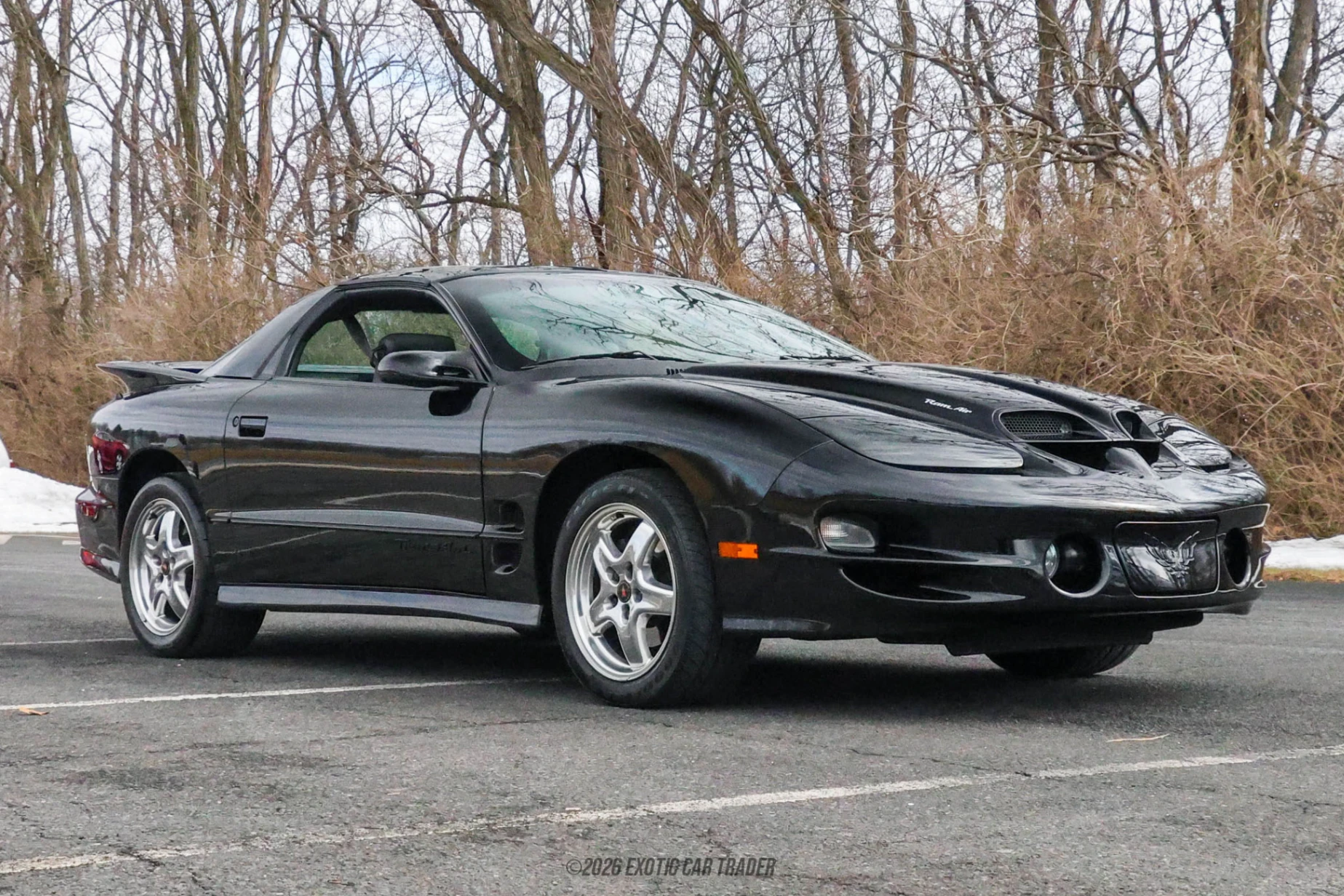The exterior of this 2001 Pontiac Firebird Formula is finished in Black and features the unmistakable Ram Air hood with dual functional scoops feeding fresh air directly into the intake. The car has been fitted with Trans Am styling cues, including the tall pedestal rear spoiler and aggressive front fascia, giving it a more muscular and commanding presence. The 17-inch high-polished aluminum wheels wrapped in P275/40ZR17 performance tires fill out the arches properly, while the removable T-top glass panels allow for open-air cruising when desired. The long hood, low stance, and sculpted rear quarters remain hallmarks of late-era Pontiac performance design. The interior of this 2001 Pontiac Firebird Formula is finished in Ebony leather and remains driver-focused, as intended. Deeply bolstered front bucket seats, a leather-wrapped steering wheel, and a straightforward analog gauge cluster create a cockpit that feels mechanical and engaging. The center console houses the automatic shifter and factory controls in a layout that prioritizes functionality. With under 13,000 miles, the cabin reflects minimal wear, further reinforcing the car’s preserved status.