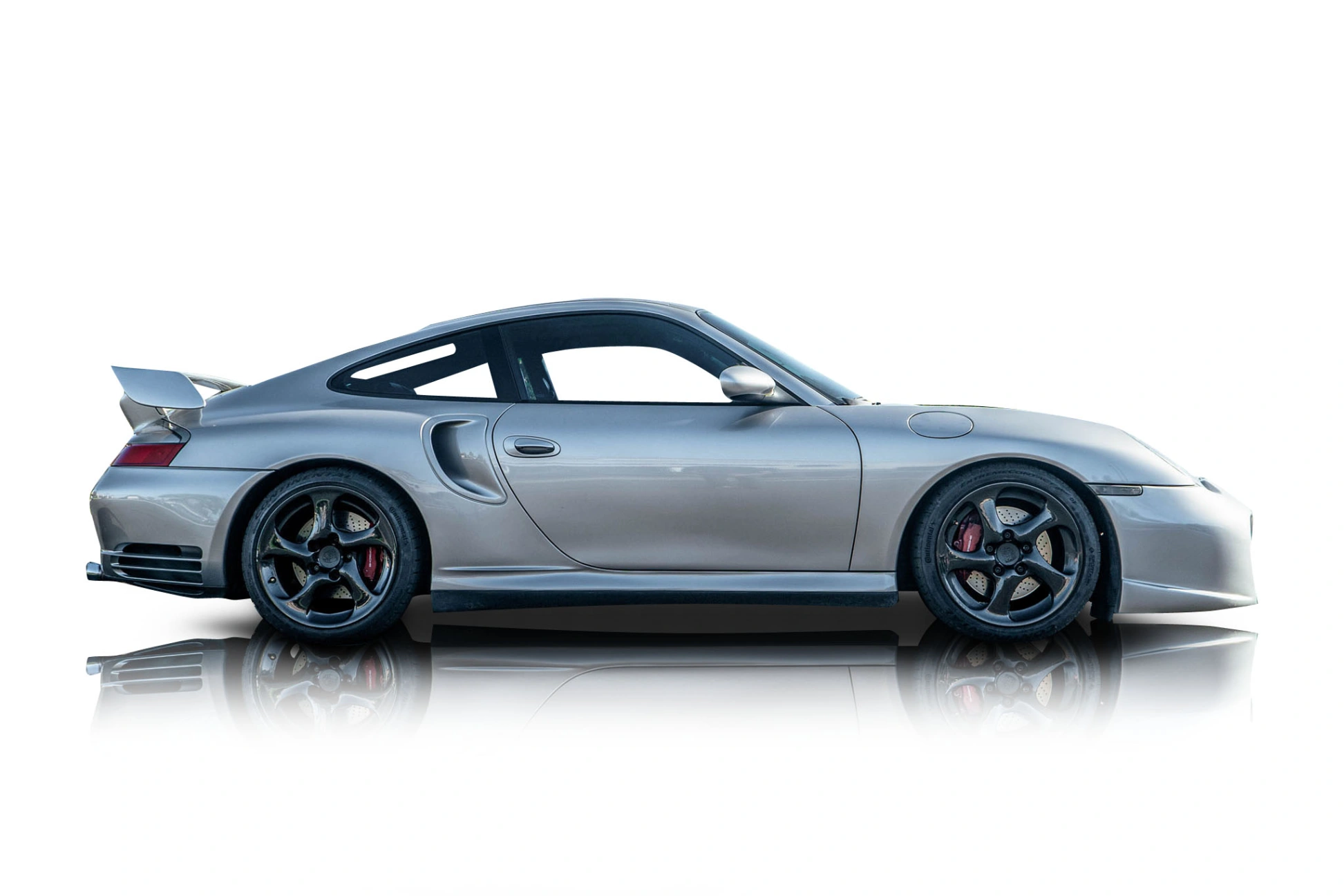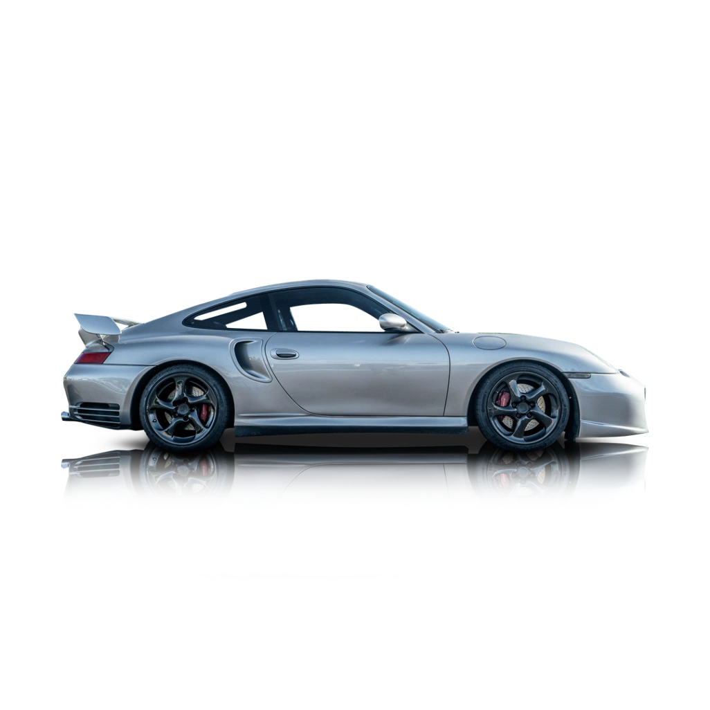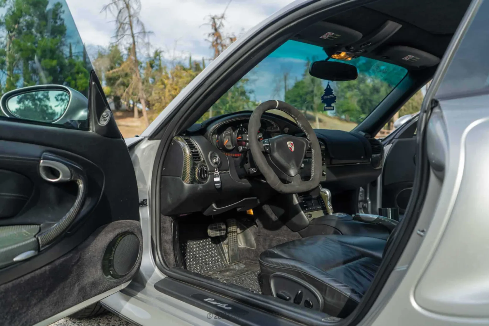 Coming from the 996 era, also known as “The One With The Scrambled Egg Headlamps,” this 2001 Porsche 911 Turbo is anything but an omelette. With its GT2-style front bumper and rear spoiler, polished stainless-steel quad exhaust outlets, 18-inch Turbo Twist wheels, and iPE exhaust system, it projects serious intent while still retaining Porsche’s timeless silhouette. Finished in Arctic Silver Metallic, the car’s look is potent without being over the top—an understated head-turner that speaks softly but carries a big turbocharged stick. Inside, the cabin is appointed with the Carbon Decor Package, Soft Look full leather seats, and heated front seats for comfort. The driver benefits from lumbar support and a Carbon/Aluminum Tiptronic shift lever and brake handle. Enhancements include an aftermarket Alcantara-wrapped flat-bottom steering wheel, Pioneer touchscreen audio player with Apple CarPlay, and a rear-view camera, blending modern tech with classic Porsche ergonomics. Thoughtful details like leather sun visors with dual lighted mirrors, footwell lighting, and self-dimming mirrors elevate the luxury feel, while rear seats offer space for children or daring companions. Altogether, it’s a cockpit that merges originality with carefully chosen upgrades, delivering both style and functionality.