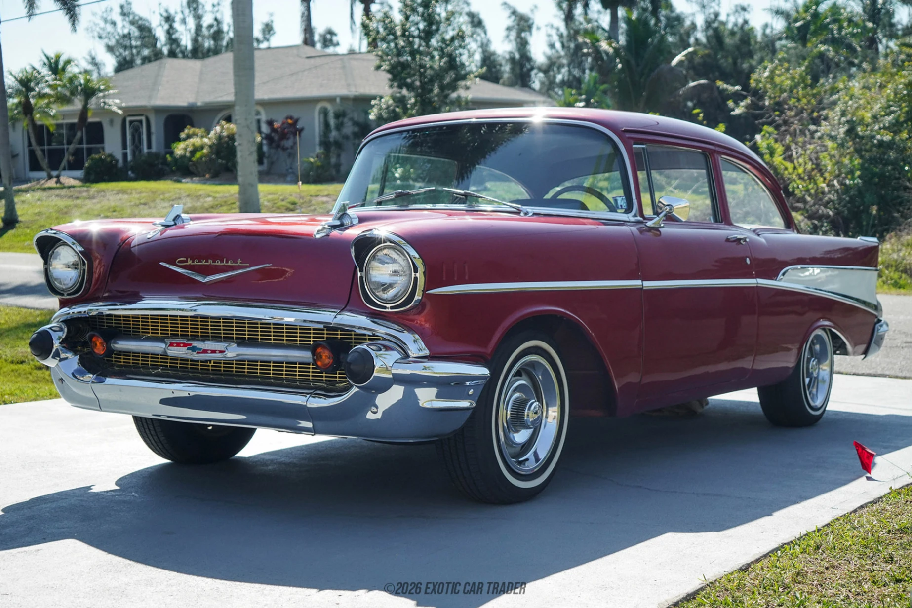 The 1957 Chevrolet 210 2-Door Sedan is a timeless classic design that truly embraced the styling cues prevalent at the time. It features long flowing lines, with large fins at the rear, and lots of little design details. But what you may not realize about our featured 1957 Chevrolet 210 2-Door Sedan is that it packs a lot more under the hood than it did when it rolled off the factory floor some 68 years ago. That’s because this Chevy has a different drivetrain, with a rate Blueprint 350ci V8 under the hood, mated to a brand new four-speed transmission. So, if you’re looking for the perfect blend of classic looks and modern performance, this classic restored treasure may be right up your alley.
