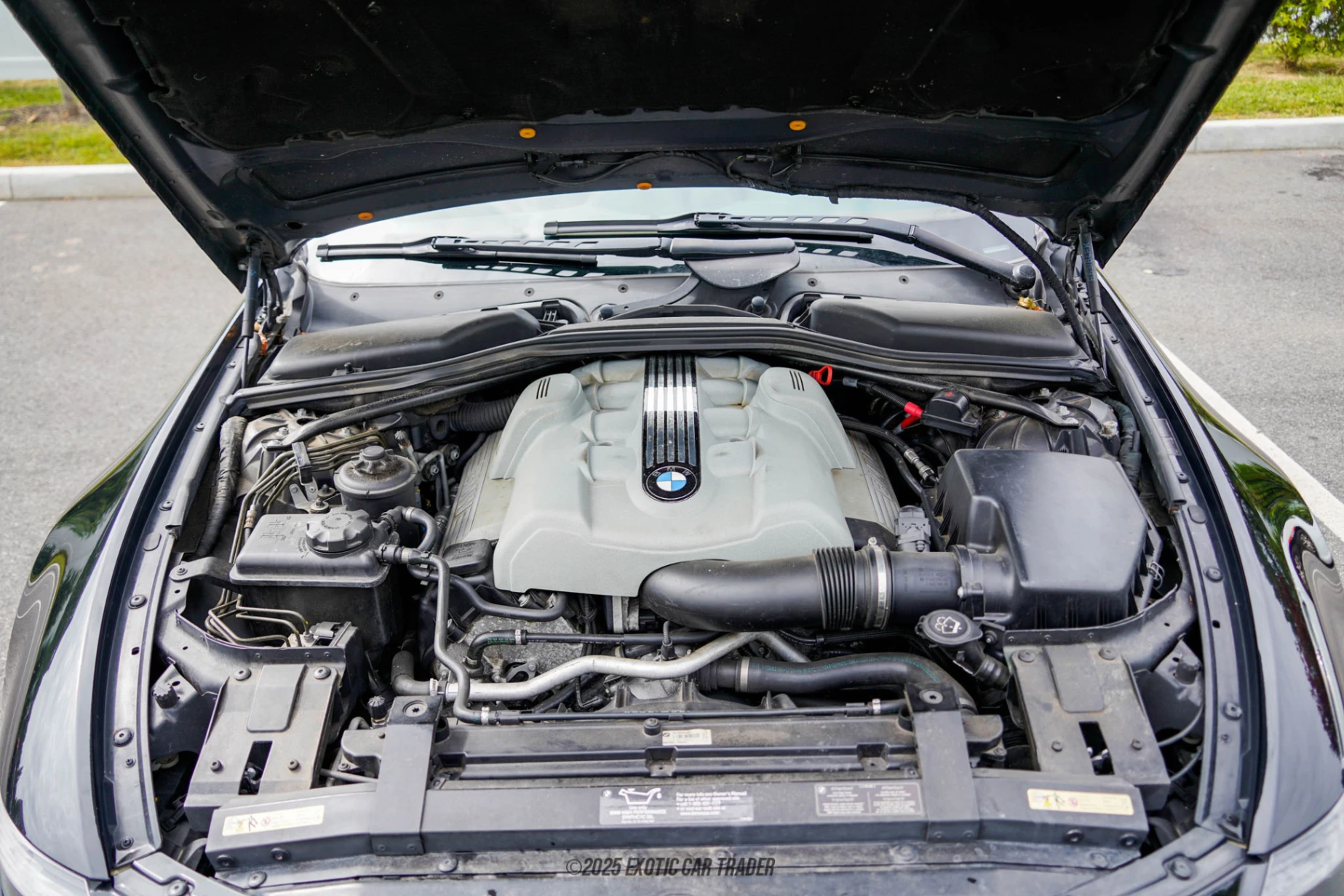 At the heart of this coupe lies the 4.4-liter naturally aspirated V8. Mated to a 6-speed automatic transmission, it provides both relaxed highway cruising and responsive acceleration when called upon. Rear-wheel drive maintains BMW’s hallmark handling balance, while the chassis tuning of the E63 prioritizes both agility and long-distance comfort. With its well-preserved mileage and factory equipment intact, this 645Ci remains an excellent representative of BMW’s return to the luxury GT segment.