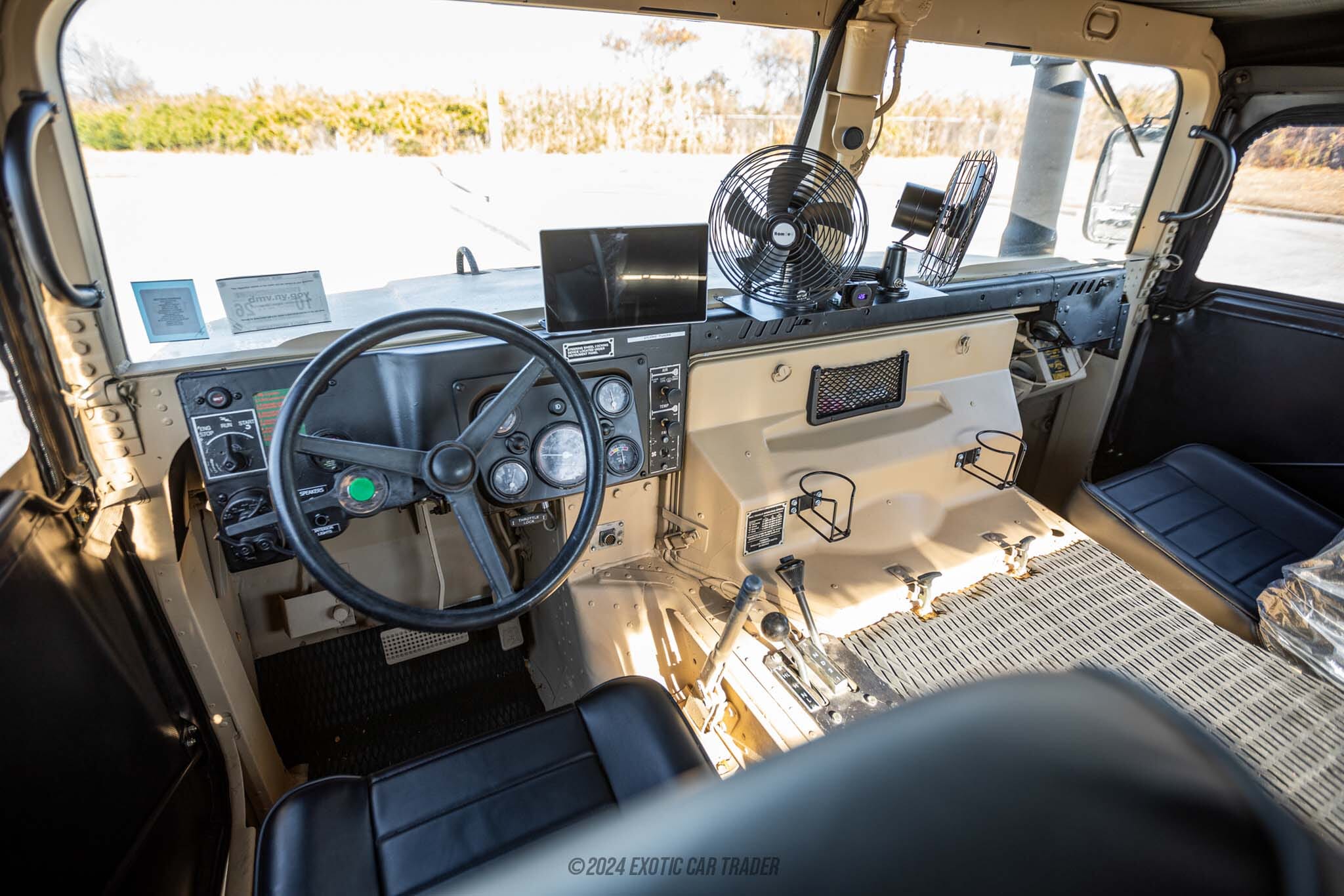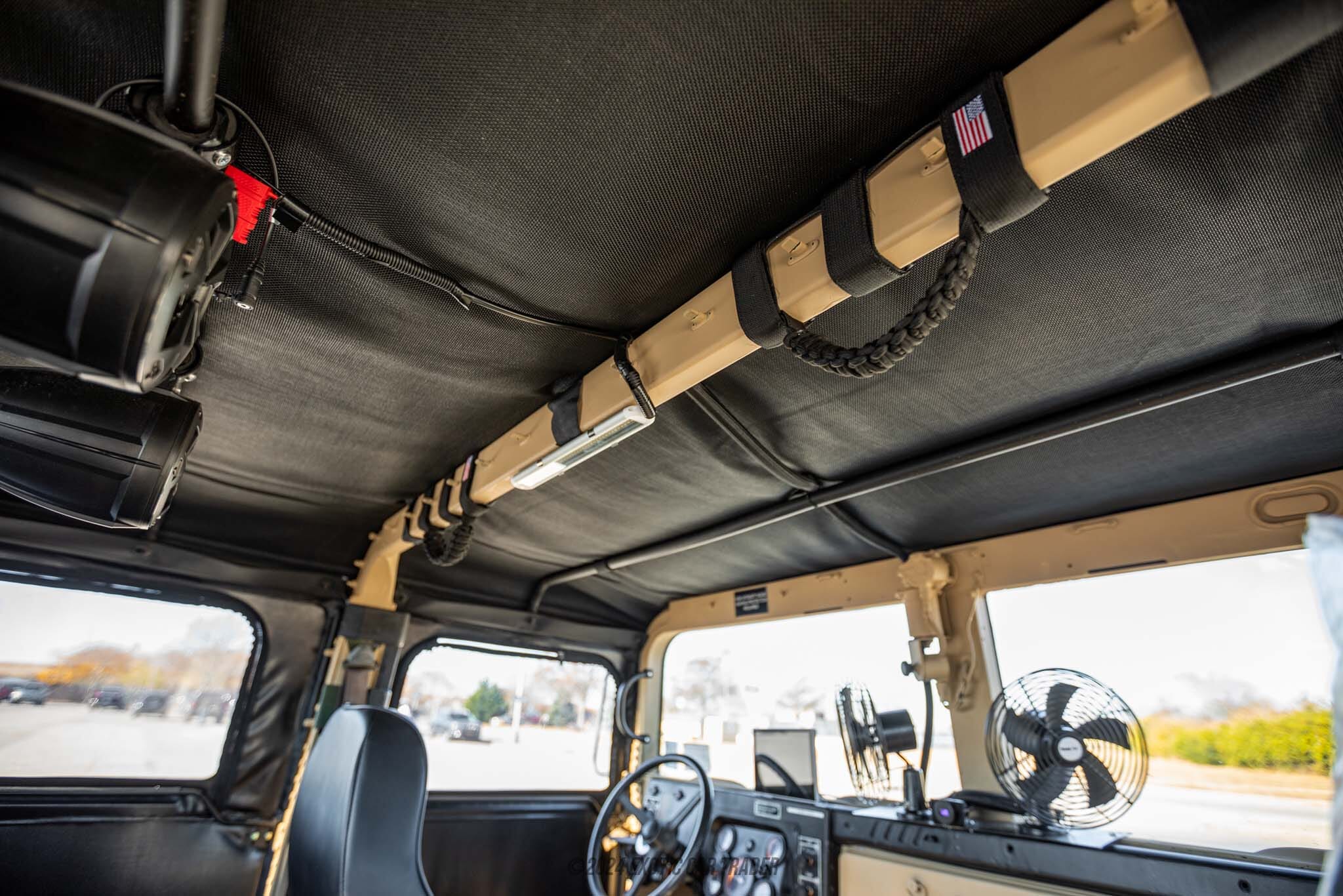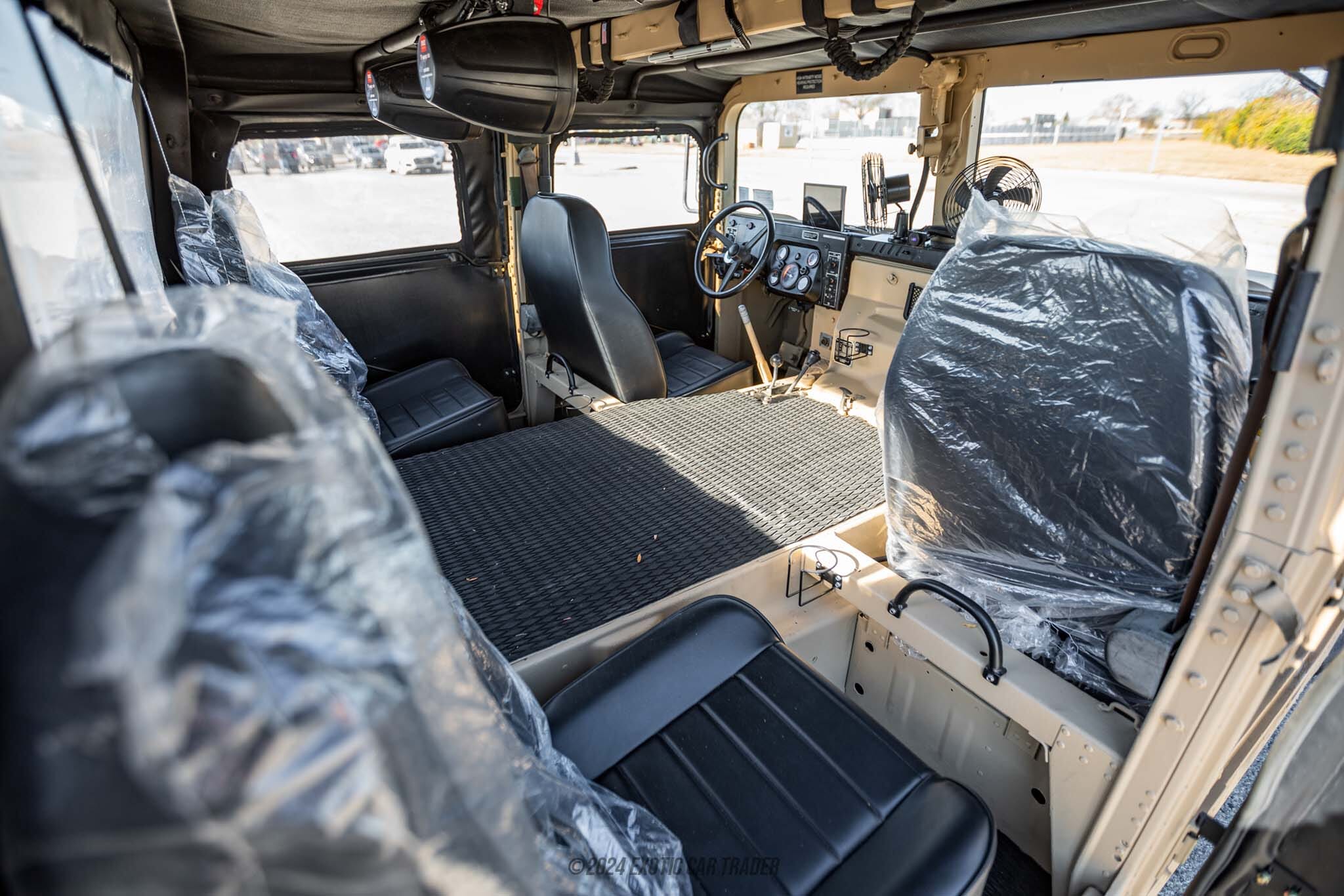 The exterior of this 2006 AM General Humvee M1097R1 is painted in a suitable shade: Sandstorm. To protect occupants from the elements, a new top is included, as are new doors and a new back cover. Move inside the black interior, and you’ll find a bit of modernization. The owner reports that the truck features grab handles throughout, as well as cupholders for added convenience. There are fans throughout the vehicle too, helping during the warmer months. But there’s plenty of evidence that this Humvee can be used hard, too. You’ll find marine-grade rubber floor mats and marine-grade seats too. The owner also reports new stereo speakers and an aftermarket Bluetooth radio with Apple CarPlay. There are even USB ports to recharge your devices on the go.