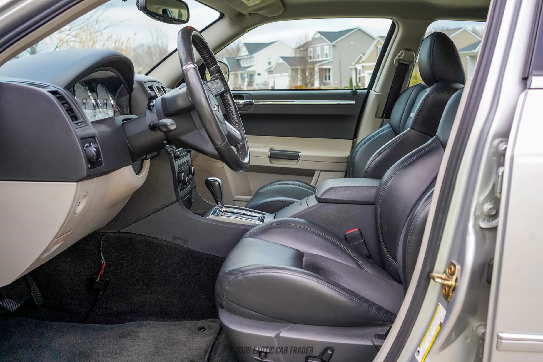Finished in Bright Silver Metallic, the exterior of this 2006 Chrysler 300 SRT-8 highlights the 300 SRT-8’s muscular bodywork, including unique SRT fascias, functional cooling openings, and a lowered ride height that visually distinguishes it from standard models. Large SRT-specific wheels and performance brakes further reinforce its performance intent. Inside, the Slate/Graystone interior offers a restrained yet purposeful atmosphere, with bolstered sport seats, SRT badging, and driver-focused instrumentation. The SRT Option Group II enhances the cabin with additional comfort and convenience features, while the power sunroof adds an open, airy feel that balances the car’s otherwise aggressive character.