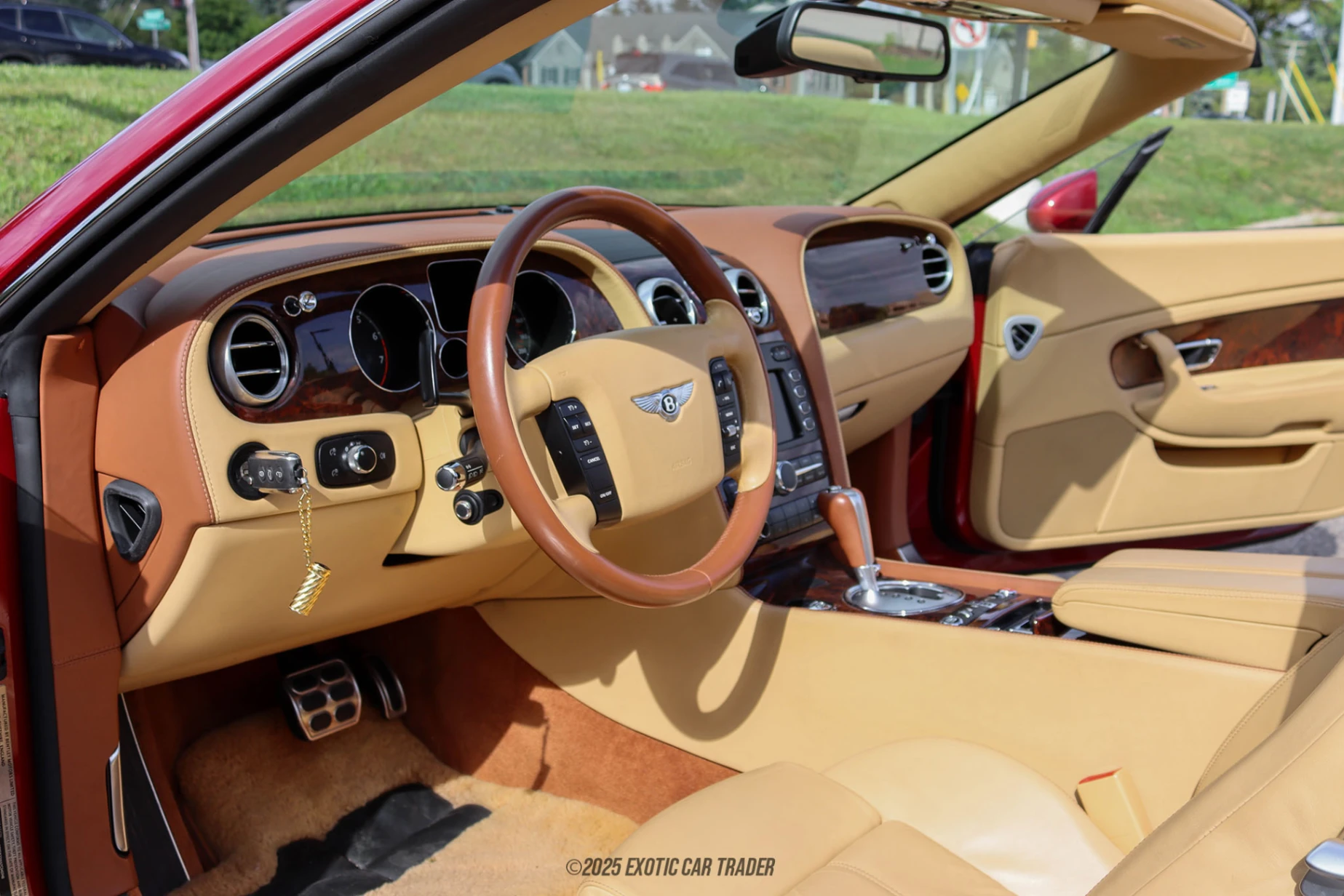 Once in a while, a grand tourer comes along that looks equally stunning in both bold and subtle shades, and this 2007 Bentley Continental GTC W12 proves it with its elegant Umbrian Red exterior. While bright reds are often reserved for flamboyant exotics, this Bentley carries the tone with unmistakable grace, further enhanced by a tan, multi-layer power-operated convertible top for a striking contrast. Iconic design cues such as the Flying B emblems, quad headlamps, and polished dual exhaust outlets emphasize its timeless presence, while the 19” 5-Spoke Chromed Alloy Wheels add an extra touch of brilliance, making the GTC appear to glide effortlessly across the pavement. Inside, the cabin is finished in Saddle Leather with Dark Stained Burr Walnut Veneer, creating a warm and classic Bentley ambiance. Unlike many convertibles that sacrifice practicality, the GTC provides true four-seat comfort, allowing adults to travel long distances in style. Luxury touches include heated, power-adjustable front seats with lumbar massage, multi-zone climate control, and a premium infotainment system, all complemented by lambswool carpeting and deep-pile mats that underline Bentley’s focus on indulgence. With a blend of handcrafted charm and modern conveniences, this interior is both opulent and inviting, ensuring every journey is an occasion.