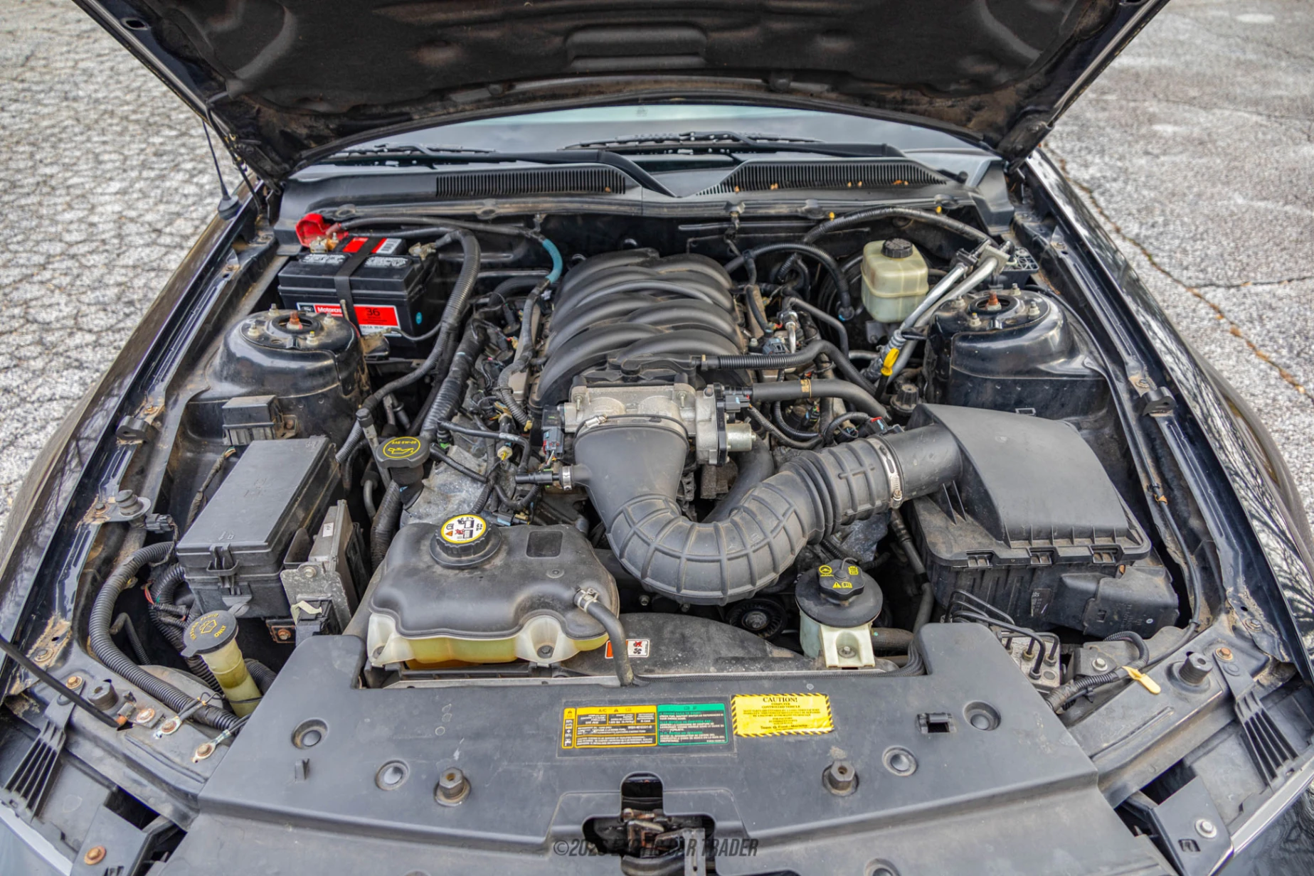 This 2008 Ford Mustang GT packs a 4.6-liter Modular V8. This is a three-valve unit that makes 300 horsepower and 320 lb-ft of torque. Paired with a Tremec 5-speed manual transmission, it allows a skilled driver to send this rear-drive machine from zero to sixty in a whisker less than five seconds!
