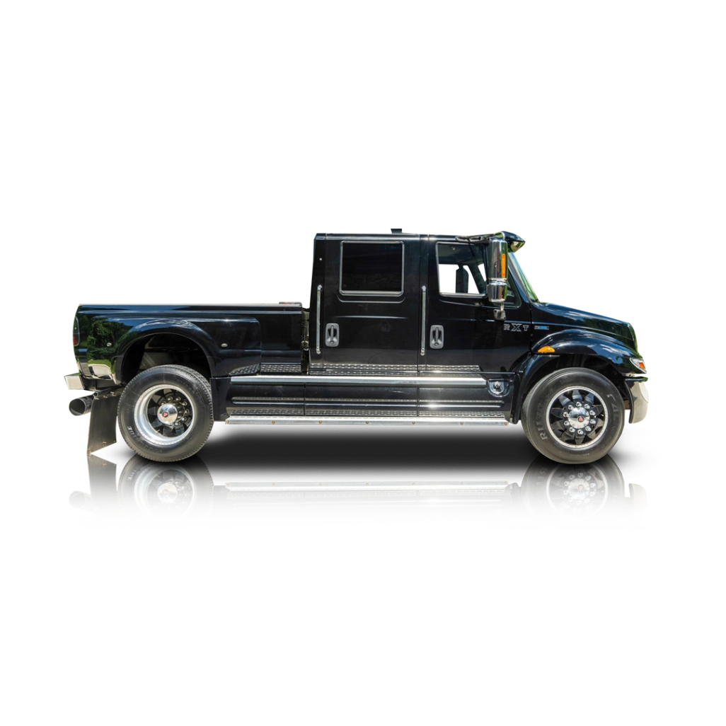 This 2008 International RXT comes in black and comprises an International 4200/Durastar base with an aerodynamic crew cab body. Looking like a semi truck tractor, this is truly a vehicle that will turn heads. Its prominent hood, glaring headlamps and dually rear axle all scream capability. Behind the passenger cabin lies a truck bed-style area with the trailer hitch prominently placed and easily accessible. The interior of this behemoth can accommodate five large adults with space to spare. It’s well equipped with air conditioning, power windows, power door locks, and power mirrors. There’s a Kenwood Excelon double-DIN touchscreen head unit for infotainment purposes, too. Meanwhile, the driver faces a comprehensive suite of white-faced analog gauges flanking a monochrome digital screen with orange backlighting. This is perfect for reliable yet straightforward information conveyance, where you don’t want distractions or iffy color screens.