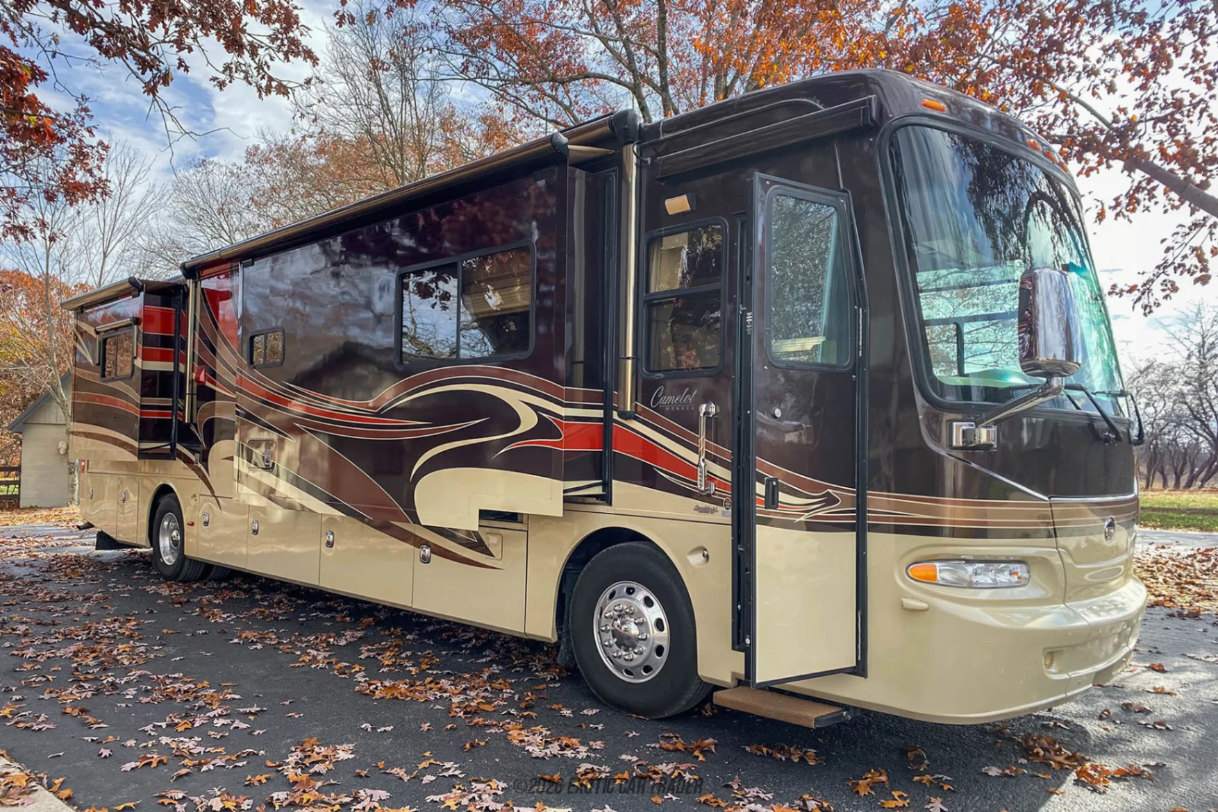 The 2008 Monaco Camelot 42PDQ represents the golden age of luxury diesel pushers, built for buyers who want residential comfort without sacrificing long-haul capability. Riding on Monaco’s highly regarded Roadmaster RR10S rail monocoque chassis, this 42-foot coach was engineered for exceptional ride quality, structural rigidity, and cross-country confidence. Power comes from a proven Cummins 8.9L ISL turbo-diesel rated at 400 horsepower, paired with an Allison 6-speed automatic transmission, delivering strong torque and effortless highway cruising. With four slide-outs, premium interior furnishings, and sleeping accommodations for multiple passengers, this Camelot remains one of the most desirable Class A diesel coaches of its era.
