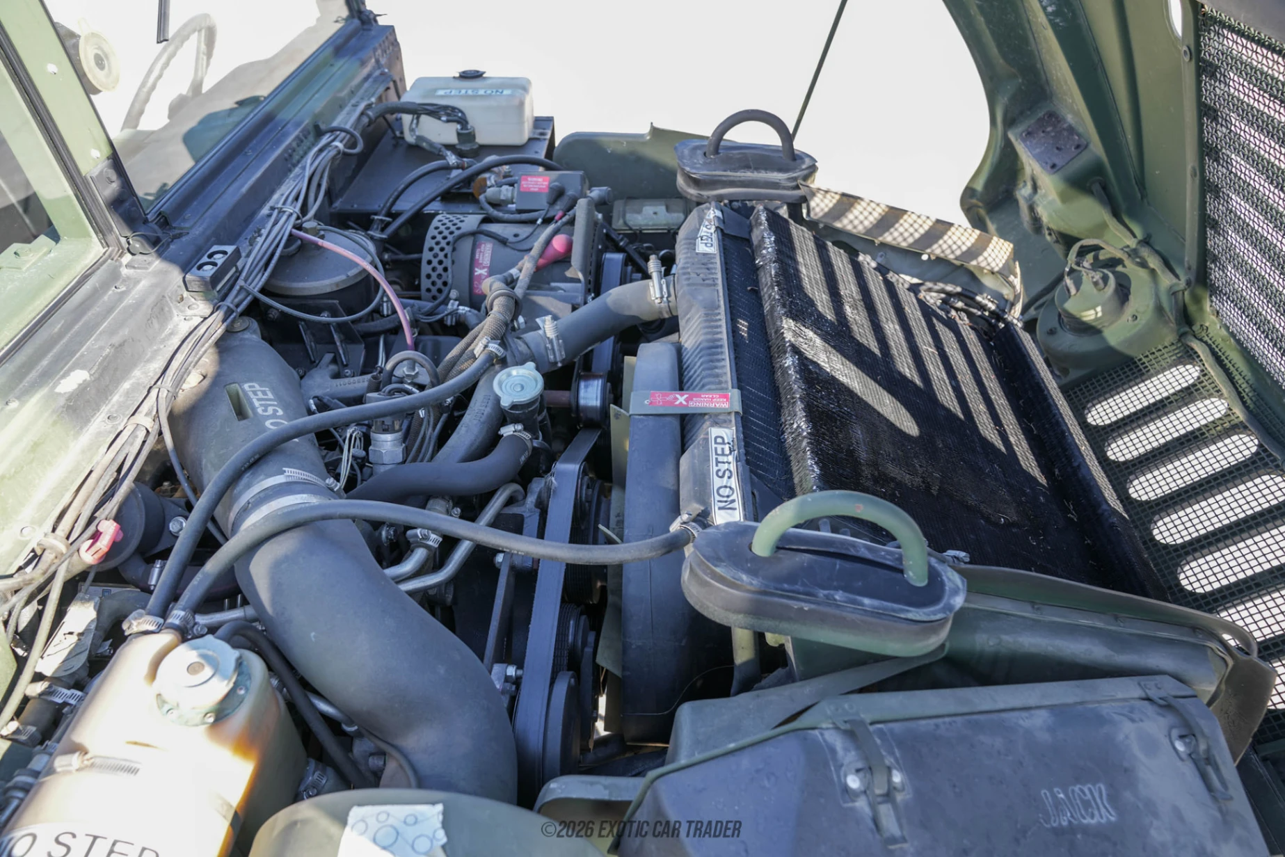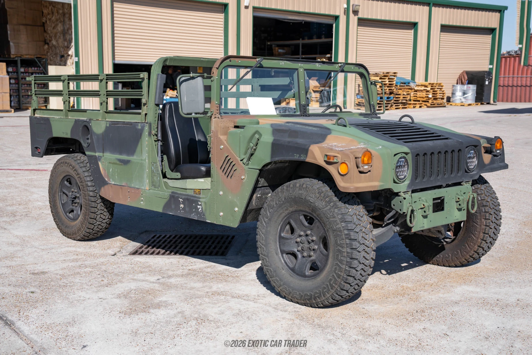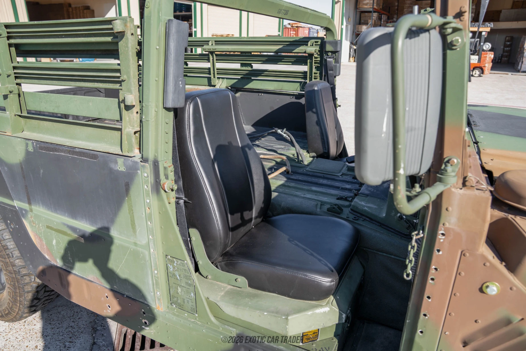 The Green Camo paint job worn by this 2010 AM General Humvee M1123 Troop Carrier makes it look like it just came back from active duty somewhere in the tropics. With its LED headlamps, bench rails and open top, this would make a great vehicle for exploring the wonderful wilderness of our country. The vehicle certainly has the chops for it, with a proper four-wheel drive system and the requisite tired for rugged terrain. The interior of this 2010 AM General Humvee M1123 Troop Carrier is pretty open to the elements, and comes in green. You’ve got a very military-like cabin, from the no-nonsense dials to the pull-out knobs for the heating and ventilation system. Just look at that steering wheel and those sturdy gear and transfer case levers, this thing was meant to be driven hard and treated with minimal care. Two vinyl seats are present inside the cabin, while the exterior seating area features characterful wood benches. Of course, if you want more comfort, you should either get a custom cushion made for these, or replace them with something else. Or, you could remove the benches entirely and create a custom passenger area – you could even turn it into a camper!