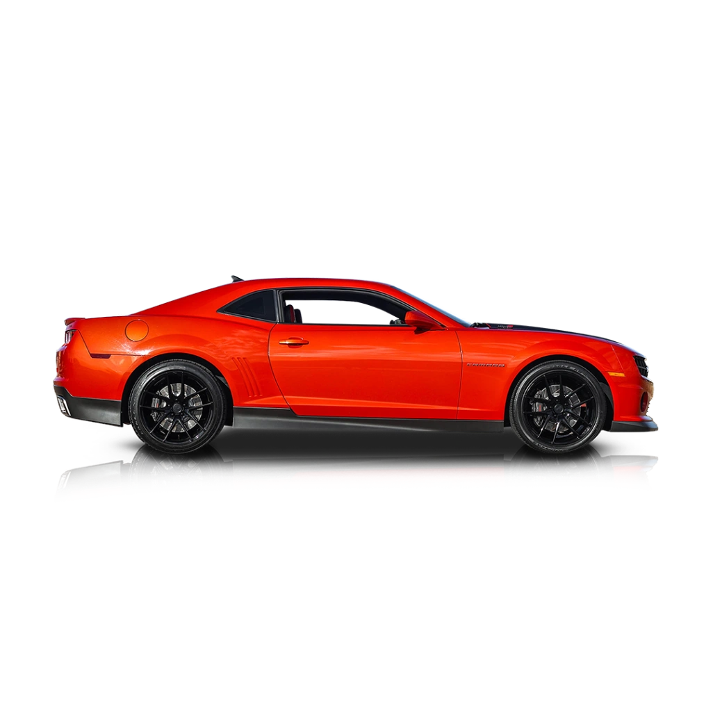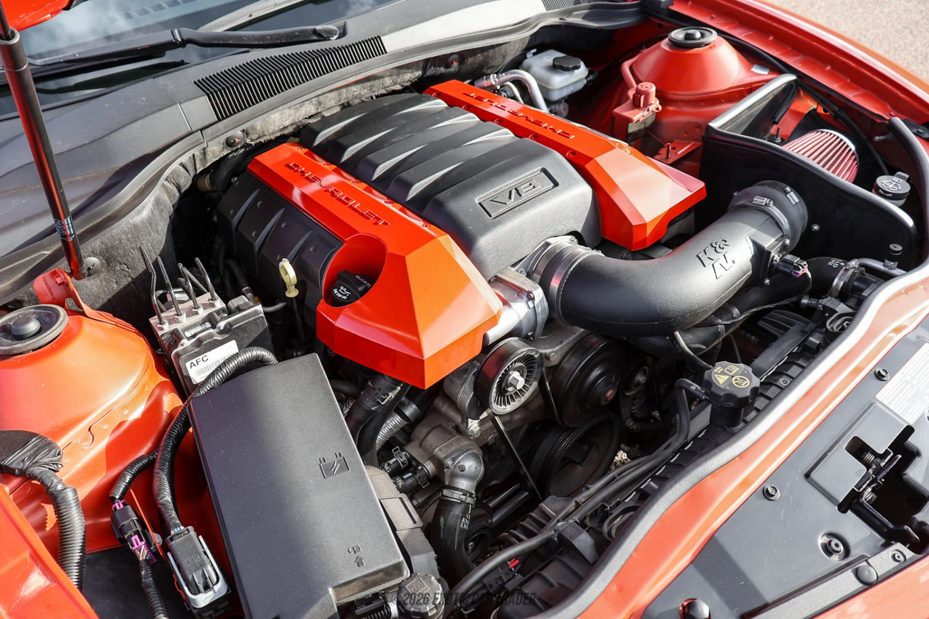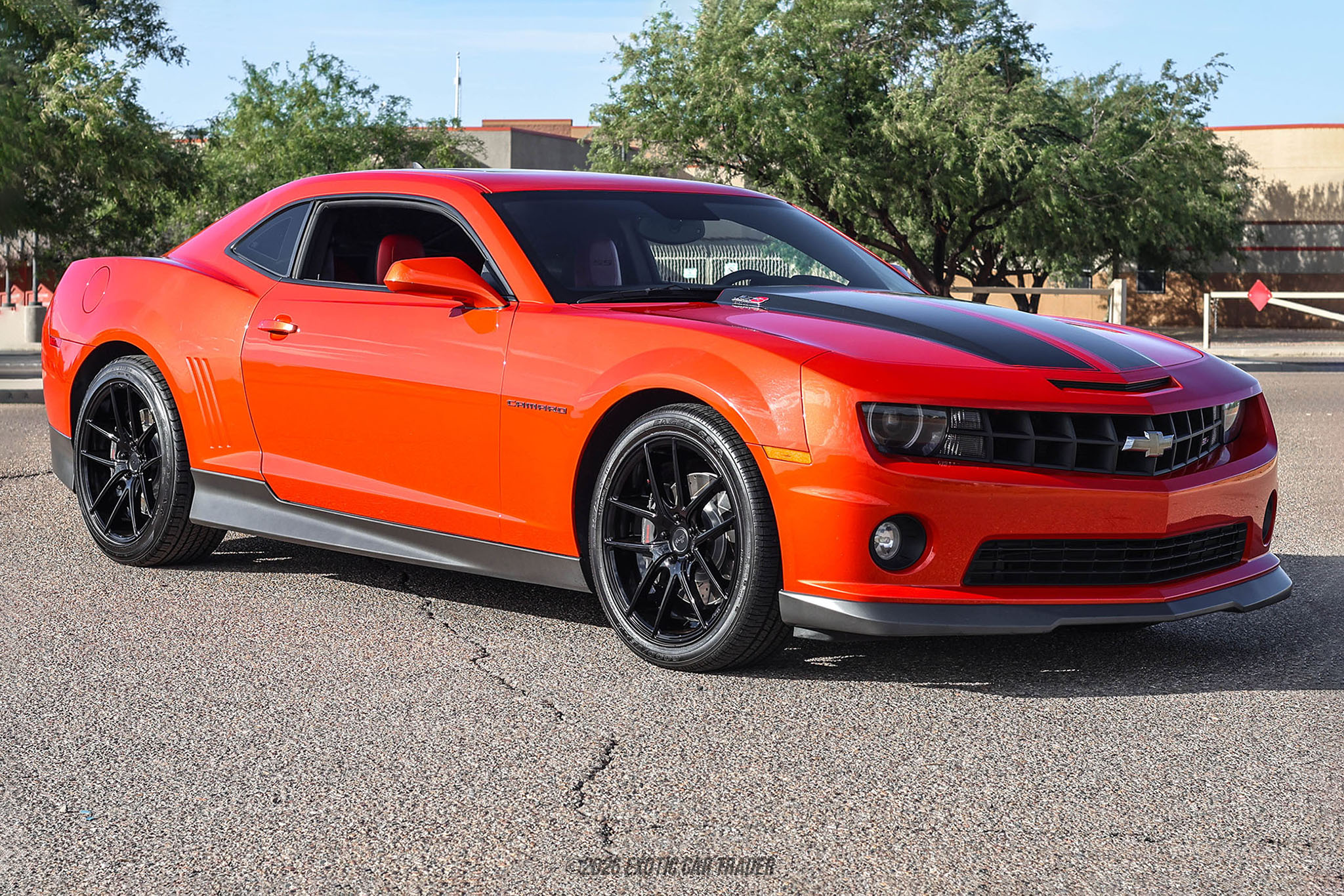 The 2010 Chevrolet Camaro 2SS marked the triumphant return of the Camaro nameplate, blending retro-inspired design with modern performance to reignite the muscle car wars. This particular example, showing 74,497 miles, stands out with its striking Inferno Orange Metallic finish paired with a matching Inferno Orange interior—one of the most iconic and sought-after color combinations for the fifth-generation Camaro. Equipped with a 6-speed manual transmission, this 2SS delivers an engaging, driver-focused experience that stays true to classic muscle car roots. Enhanced with tasteful aftermarket upgrades including intake, exhaust, and aerodynamic components, this Camaro offers both visual aggression and improved performance, making it an appealing choice for enthusiasts seeking a bold and well-sorted modern classic.