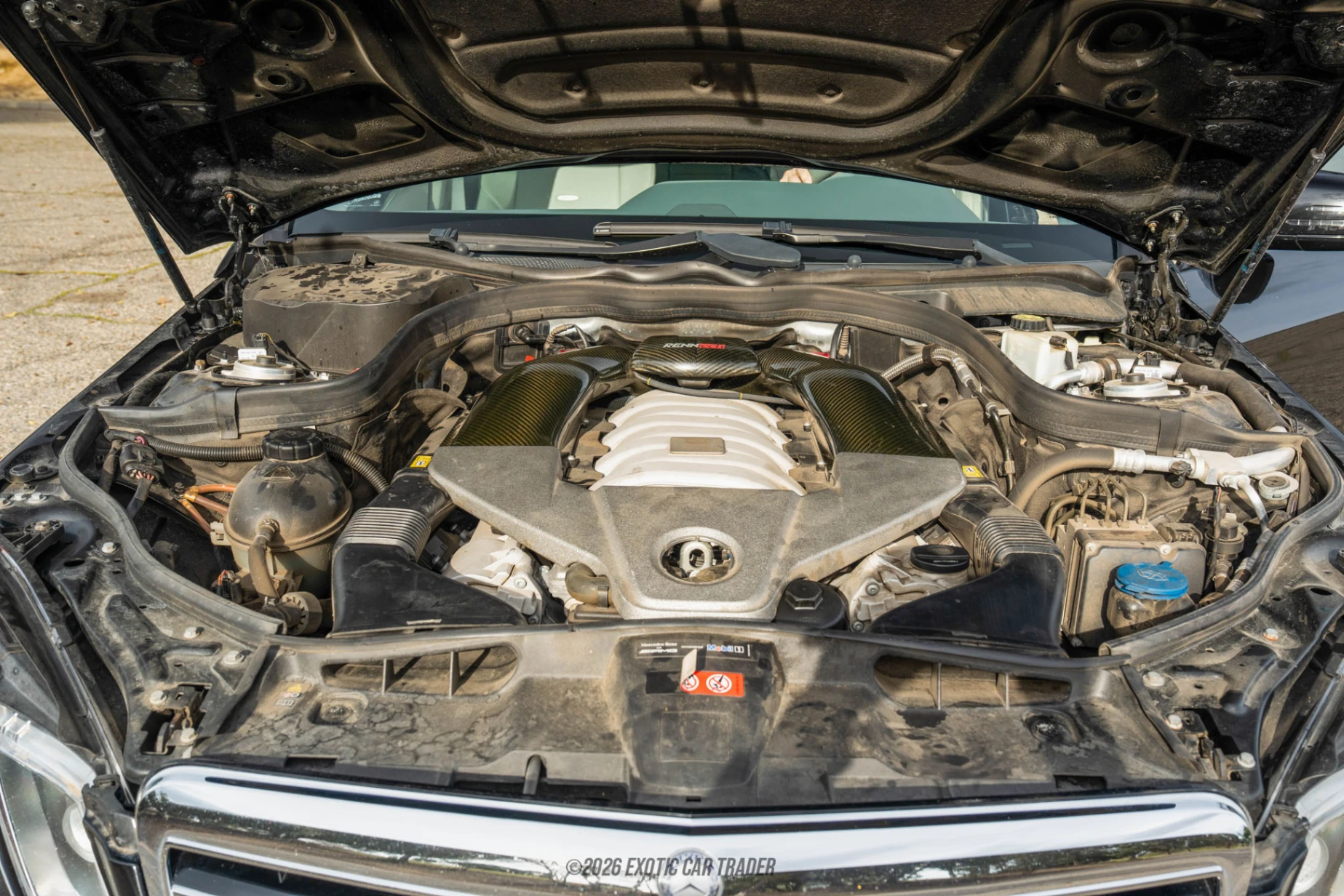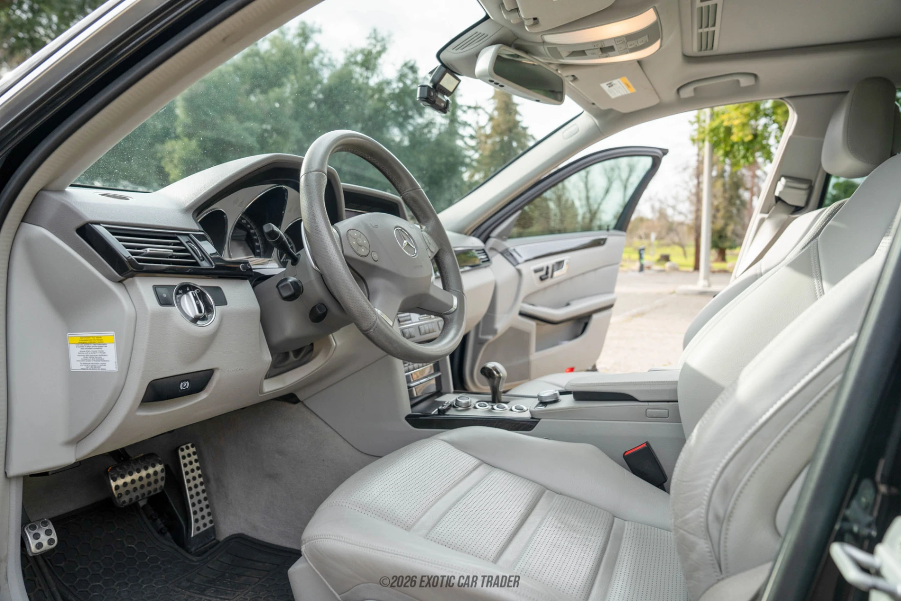 Dressed in sleek black, this 2010 Mercedes-Benz E63 AMG Renntech showcases the design of the W212, a design that has aged very well. It still looks very relevant and modern in 2026. This car rides on aftermarket wheels and rocks a rear spoiler too. Naturally, it has not only Mercedes-Benz, but AMG and Renntech badging as well. But perhaps its most telling calling card is the four exhaust tips in the lower portion of the rear bumper, which aren’t for show, but highly functional – and you’ll definitely hear why, when the engine is switched on. The gray leather interior of this 2010 Mercedes-Benz E63 AMG Renntech features seating for five adults and there’s a sunroof too, for some light. You’ve got a nice pre-touchscreen era Mercedes-Benz cabin, which means loads of buttons and some knobs. The screen is actually touch-sensitive but you rarely need interact with it this way. The car isn’t short of tech, either. The front seats have heating, ventilation, power adjustment and memory functions. There’s dual-zone climate control with air conditioning and rear passenger air vents. Getting back to the front seats, a closer look reveals an additional set of controls for the massaging function! You’ve also got Harman/Kardon speakers, plenty of storage spaces and a roomy trunk. Perhaps the only modern amenity missing is a set of USB device charging ports but you can plug an adaptor into the car’s 12-volt power socket.