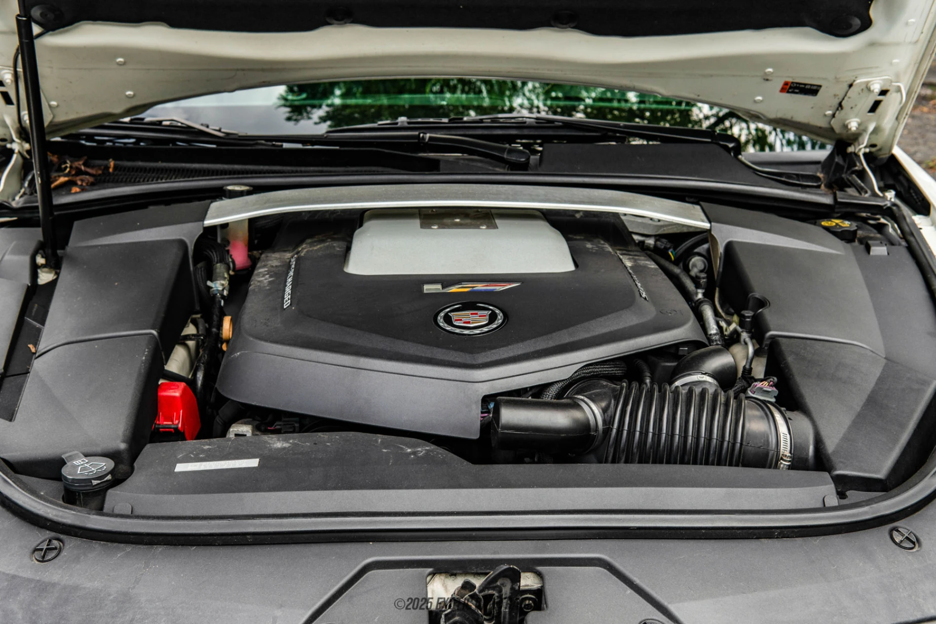 This 2011 Cadillac CTS-V Coupe comes to you dressed in White Diamond Tricoat which is a beautiful paint job that really looks excellent under direct sunlight. The car’s menacing looks are not only due to its angular design but the fact that the V features a more aggressive body kit. It’s also got 19-inch silver alloy wheels with high-performance tires. The interior of this 2011 Cadillac CTS-V Coupe comes in Ebony and Saffron which is a very aesthetically pleasing two-tone theme. It’s lavishly decked out with a power sunroof, suede fabric inserts, heated and ventilated front seats with power adjustment, automatic climate control, a suede steering wheel, and paddle shifters. You’ve also got the required powered amenities, a nice sound system and plenty of storage spaces. Plus, you don’t have to settle for a featureless digital gauge cluster because this car comes from the analog gauge era, with its three-binnacle gauge cluster featuring proper needles for the gauges. You’ve also got cruise control for relaxed long-distance drives when you’re not exploring the dynamic range of that mega V8.