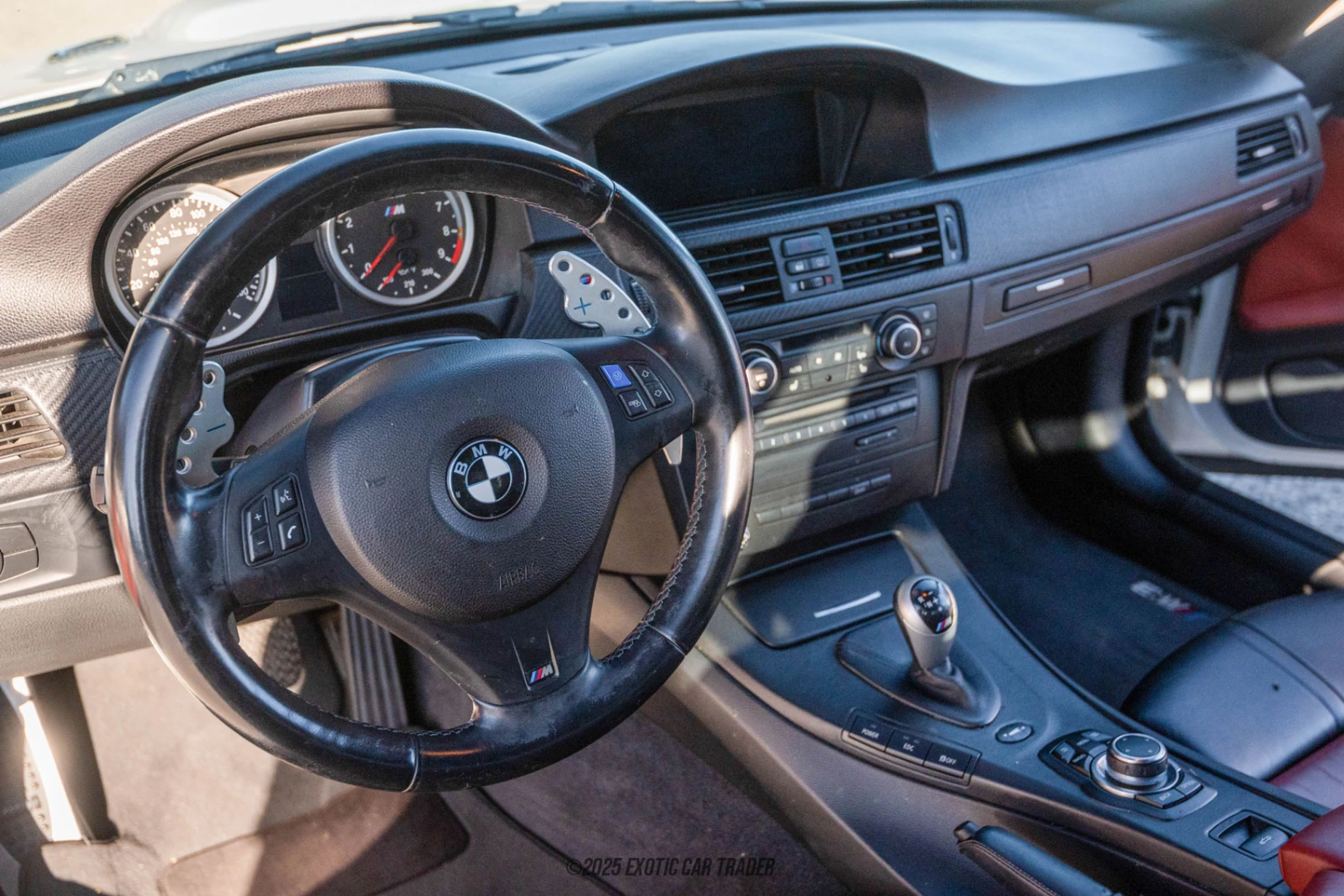 Wearing a Mineral White Metallic coat, this 2012 BMW M3 Convertible comes with a proper, metal folding roof instead of the typical canvas top that convertibles rock. That means it offers a proper coupe experience when the top is up, paired with full drop-top capabilities. The car’s sharp looks and 19-inch alloy wheels are further enhanced by its aftermarket carbon fiber rear lip spoiler and rear diffuser. And how can we forget those iconic quad exhaust tips? The four-seat interior of this 2012 BMW M3 Convertible comes with carbon leather trim and an enhanced premium sound system. You’ve also got heated front seats with power adjustment, automatic climate control with air conditioning and a navigation system. The doors are frameless, and there’s a lovely analog gauge cluster to behold. Gear shifting is accomplished via paddles behind the multifunction steering wheel. As for boot space, there’s a decent amount despite the need for the folding metal roof.