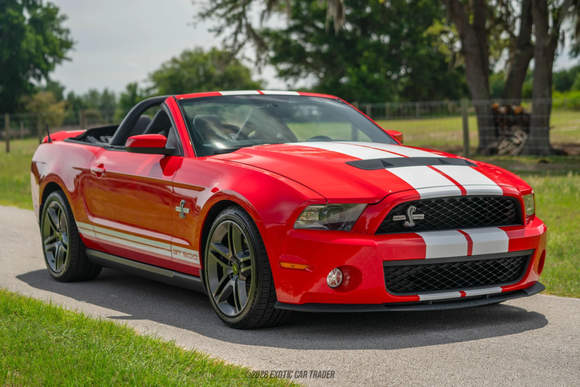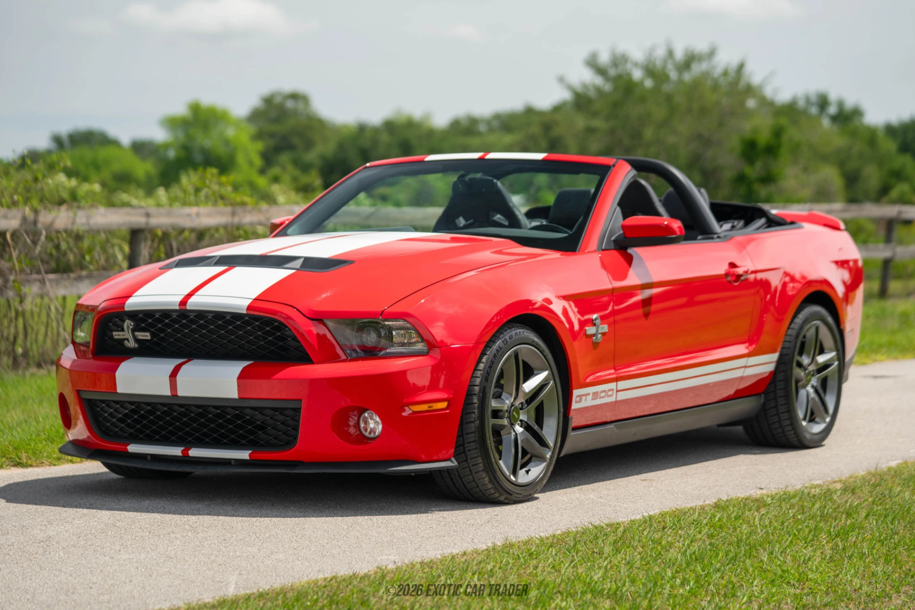 The 2012 Ford Mustang Shelby GT500 Convertible represents the final evolution of the iron-block supercharged 5.4L era before Ford transitioned to the lighter 5.8L platform. With 45,169 miles on the odometer, this example delivers raw American muscle paired with open-top driving excitement. Producing a factory-rated 550 horsepower, the GT500 stood as one of the most powerful production Mustangs of its time, blending brute force with surprising refinement. Finished in Race Red with iconic Le Mans stripes, this car captures the essence of Shelby heritage while offering modern amenities like navigation and SYNC. For enthusiasts seeking a visceral, analog driving experience with serious collector appeal, this GT500 Convertible checks all the boxes.