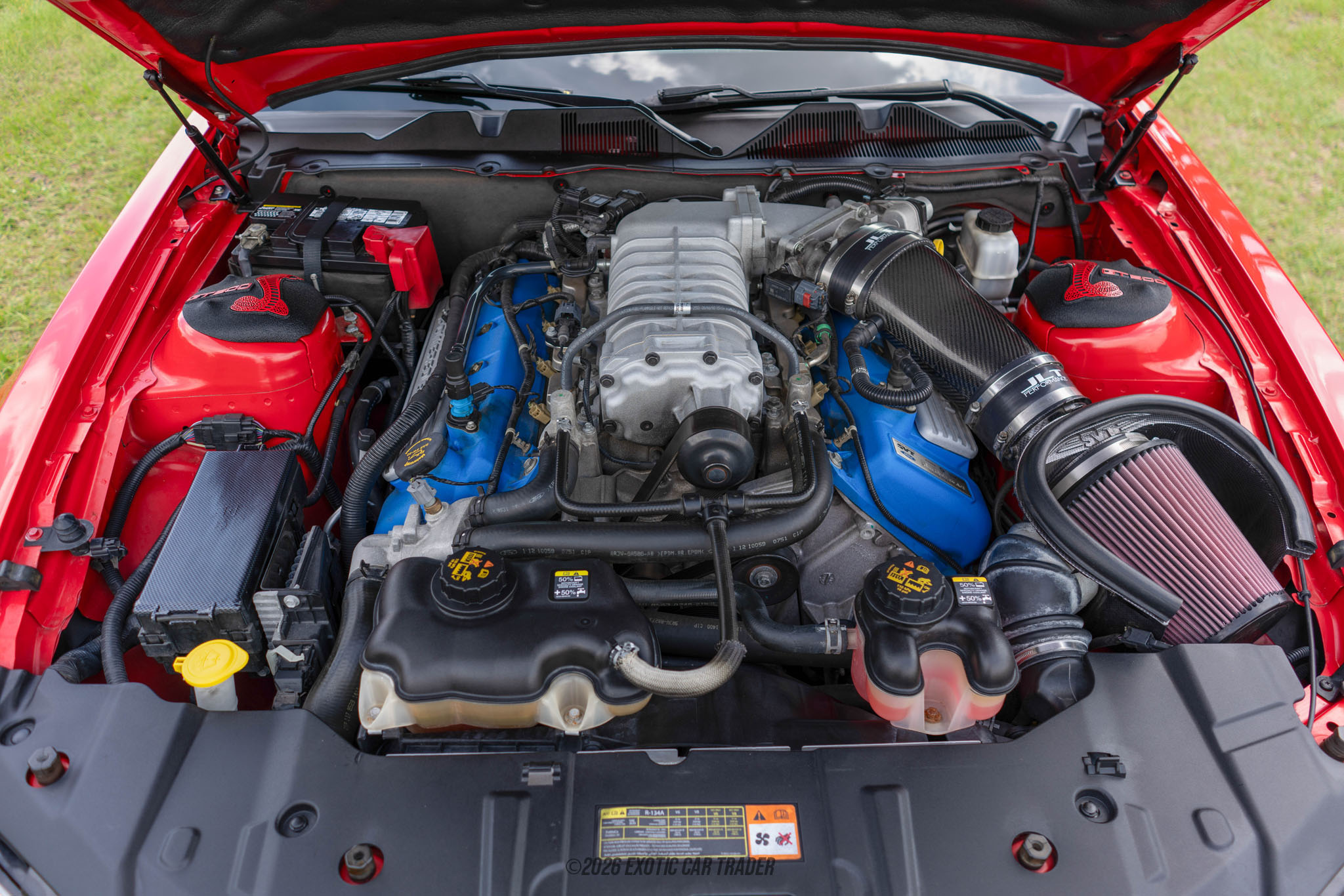 At the heart of this GT500 lies a 5.4L supercharged V8, a powerhouse derived from Ford’s SVT engineering program and built to deliver relentless performance. Producing 550 horsepower and 510 lb-ft of torque, this engine utilizes a roots-type supercharger to provide immediate throttle response and explosive acceleration. Power is sent to the rear wheels through a precise 6-speed manual transmission, giving drivers full control over the car’s immense output. Complemented by an SVT-tuned suspension, 3.55 limited-slip rear axle, and massive Brembo front brakes, this GT500 is engineered to handle both straight-line speed and confident cornering. The dual stainless steel exhaust system amplifies the experience with a deep, unmistakable roar that defines the Shelby driving experience.