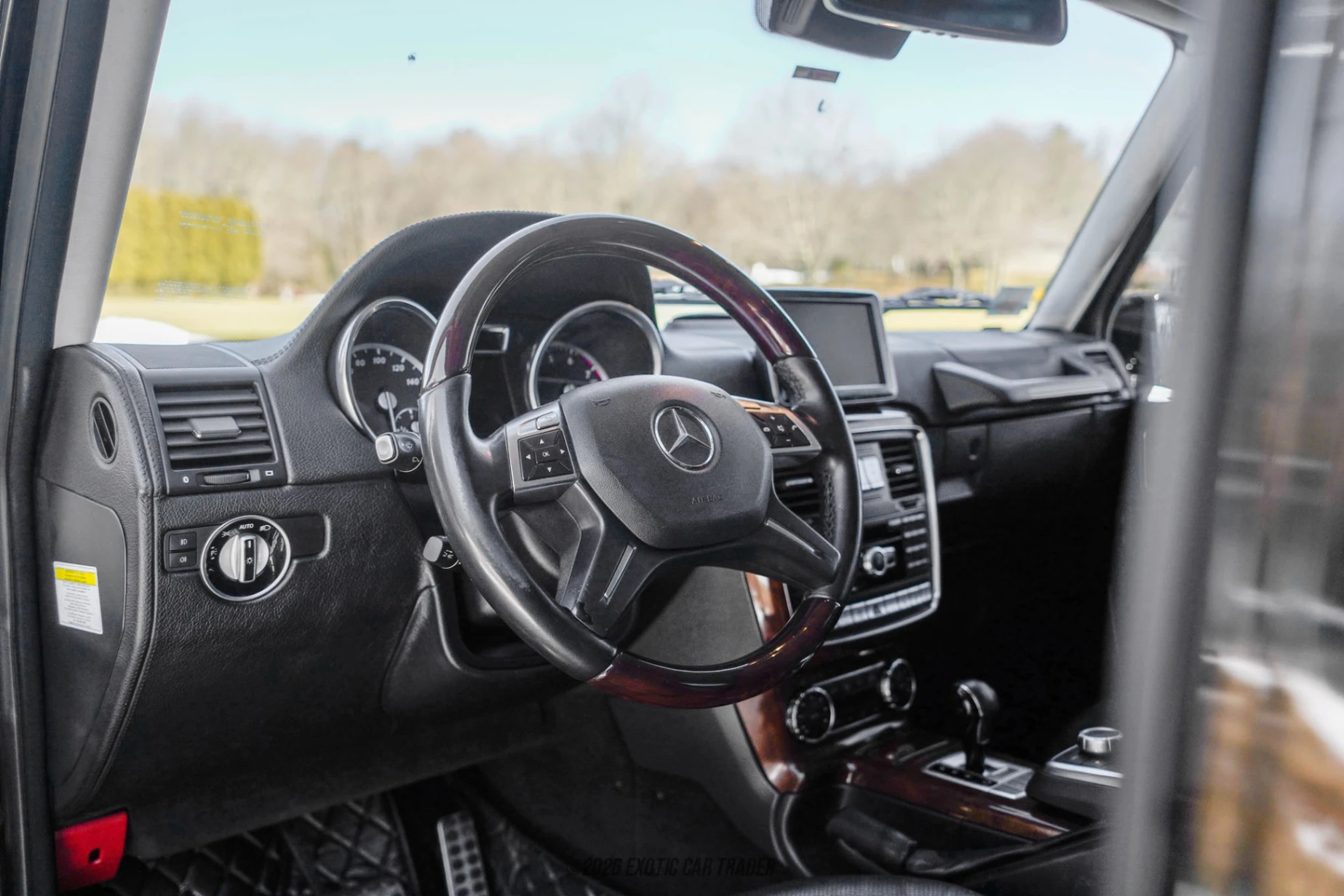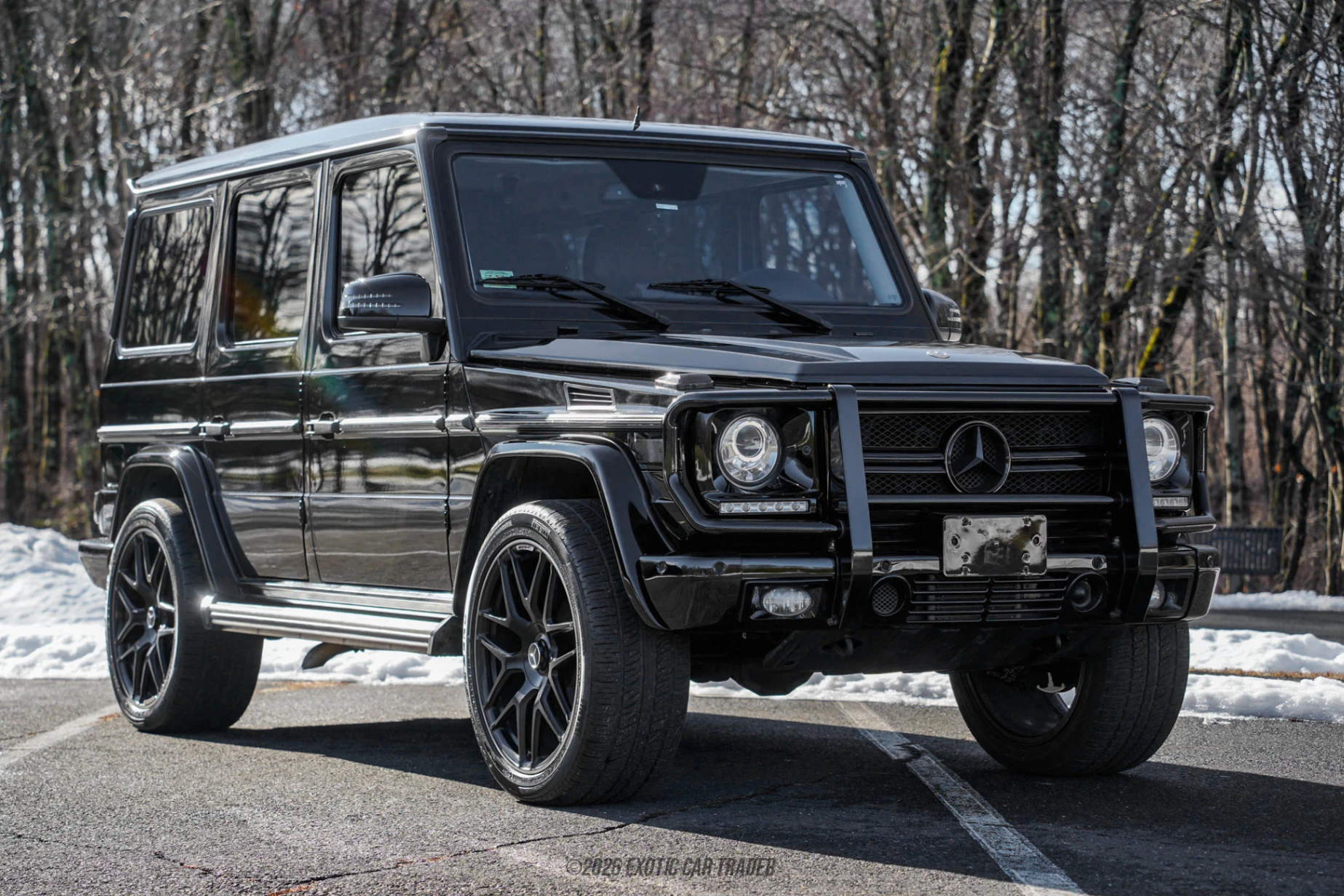 Black is an ideal complement to the G-Class’s sharp, purposeful design and plays a central role in defining its character. One look at this 2013 Mercedes-Benz G 550 finished in black brings that statement to life. The dark treatment extends well beyond the paintwork, with nearly all exterior elements finished in black to create a cohesive and understated appearance. A walk around the vehicle reveals subtle enhancements, including black retrofitted AMG wheels and a dual-exhaust system with chrome tips that provide a deliberate contrast against the otherwise monochromatic exterior. Inside, the G-Class reflects its evolution from a historically utilitarian vehicle to a luxury-oriented sport utility platform. The interior retains its factory black theme and original layout while incorporating a focused audio upgrade. A custom dual-subwoofer installation in the rear cargo area enhances low-frequency response and overall acoustic depth, improving sound quality without compromising the vehicle’s functional versatility or core design identity.