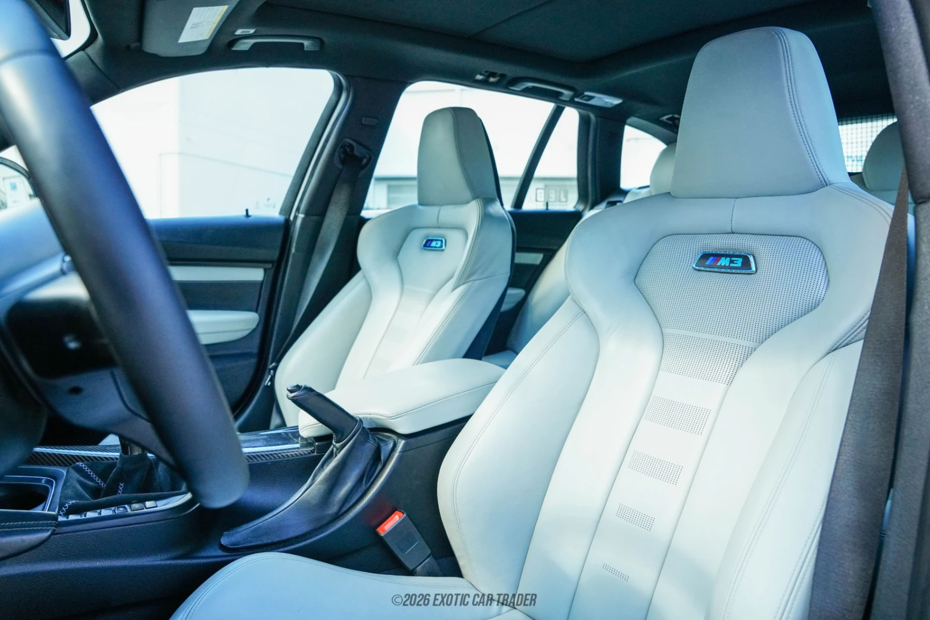 The Yas Marina Blue finish is a signature M color and immediately ties the car to the F80 generation M3. Paired with 20-inch Style 666M wheels—an iconic Competition Package design—the stance and proportions closely mirror factory M3 aesthetics. The lowered suspension enhances the visual presence while reducing wheel gap for a more purposeful look. Inside, Oyster Dakota leather maintains BMW’s upscale touring feel, while carbon fiber trim reinforces the motorsport theme. Unlike many stripped-out conversions, this example retains its original Premium, Cold Weather, and Lighting packages, along with navigation and Park Distance Control, preserving comfort and daily usability.