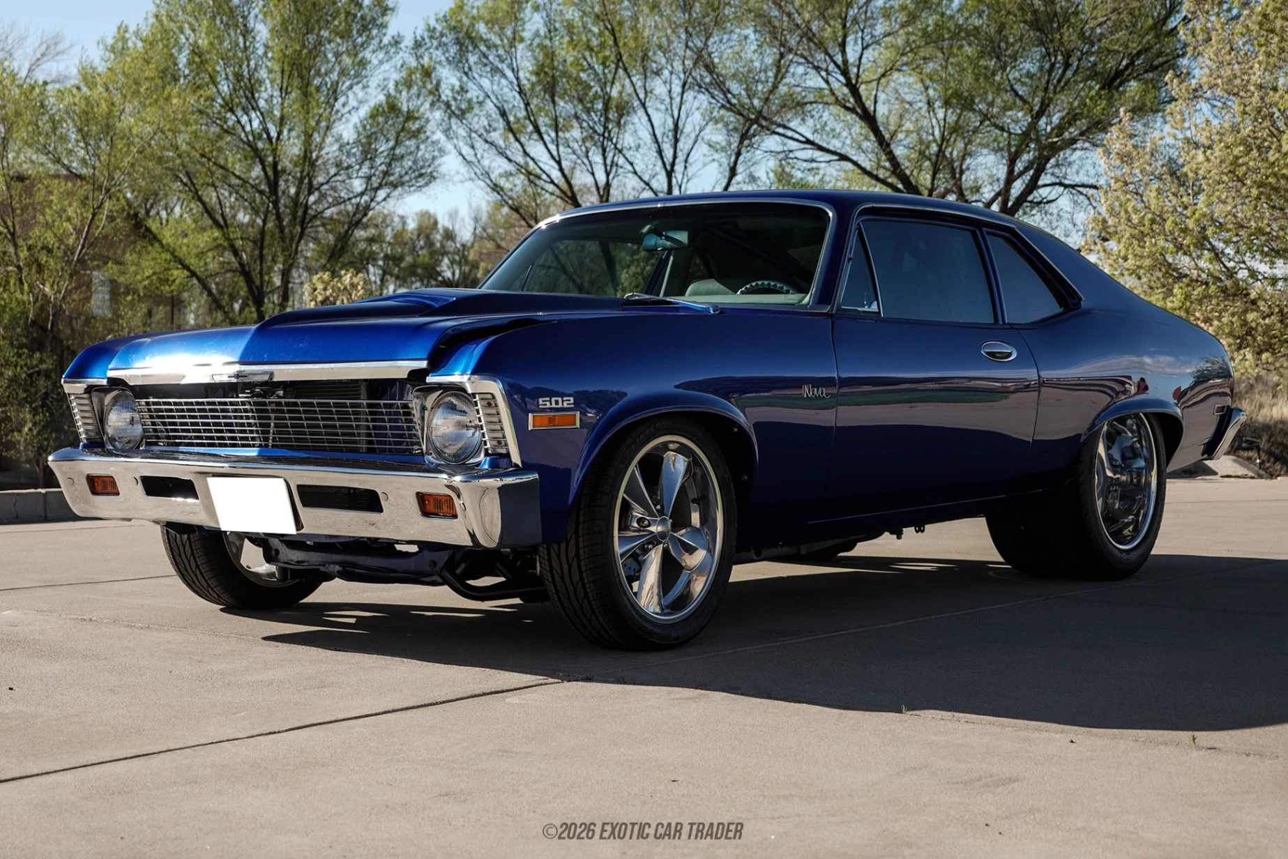 Experience the classic allure of this 1969 Chevrolet Nova Restomod, a striking blend of vintage style and modern performance. Finished in a sleek custom blue exterior, this coupe commands attention while honoring Chevrolet’s iconic late-60s design. Now showing just over 11k miles on its build, this Nova has been thoughtfully upgraded throughout, transforming it into a high-performance machine with enhanced drivability and reliability. Powered by a formidable 502ci Ram Jet V8, it delivers modern power while preserving the raw character of a true American classic, making it an exceptional choice for collectors and enthusiasts alike.