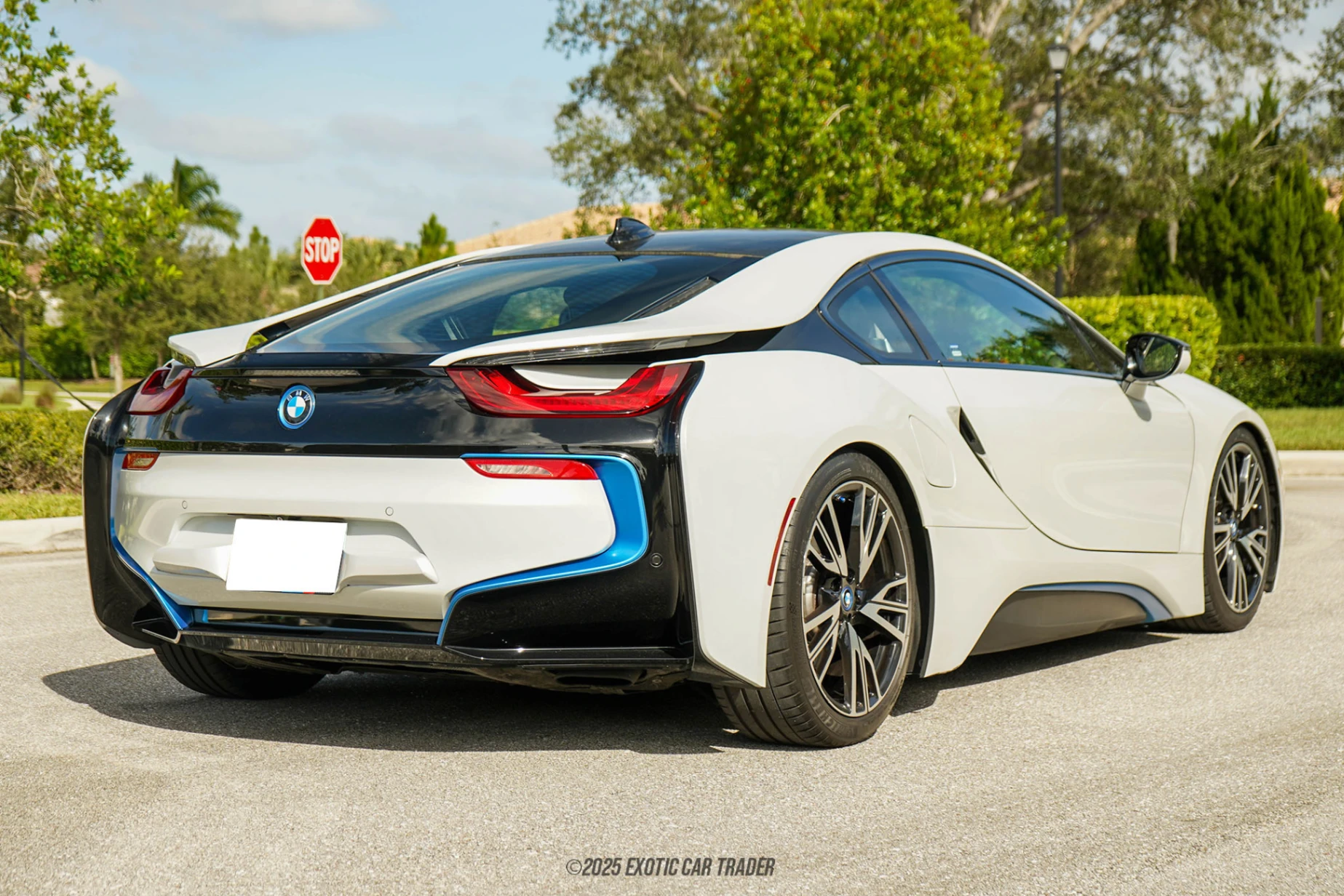 This 2015 BMW i8 stands out as a coveted early-production example equipped with the top-tier Pure Impulse World package, making it one of the most premium configurations available. Finished in Crystal White Pearl Metallic w/ Frozen Blue Accents, it carries the most iconic i8 look while pairing it with the Pure Impulse Carum Spice Full Perforated Leather interior—BMW’s highest interior specification for the model year. The combination of hybrid performance, exotic butterfly-door styling, and a $150K original MSRP positions this i8 as a futuristic grand-touring sports car with a luxury-focused package rarely seen on standard trims.