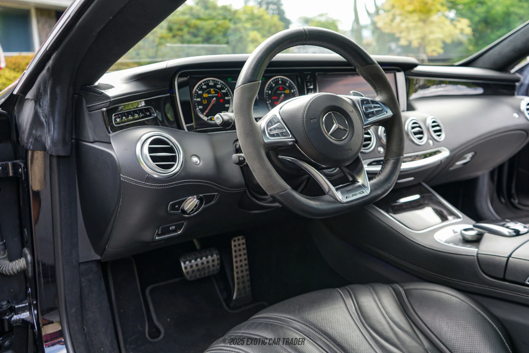 The black interior and exterior combination gives this car a clean and sleek look. It helps accentuate the chrome and silver embellishments, especially on the exterior like the chrome quad exhaust tips (not fake exhausts like newer Mercedes models) and the window. The silver alloy wheels are wrapped in Michelin tires, and the windows are tinted for privacy. The interior is everything one would expect from an S-Class, with heated and cooled, electrically adjustable memory seats, a Burmester sound system, wood trim and stainless steel everywhere, an array of advanced driver aids, a digital driver display and more. Being a coupe, rear leg room may be quite limited with 2 tall adults in the front seats, but it can carry 4 people when required, and has a generous amount of trunk space for luggage. Despite having a reported 92,890 miles on the clock, the condition of the exterior, interior and undercarriage appear almost spotless.