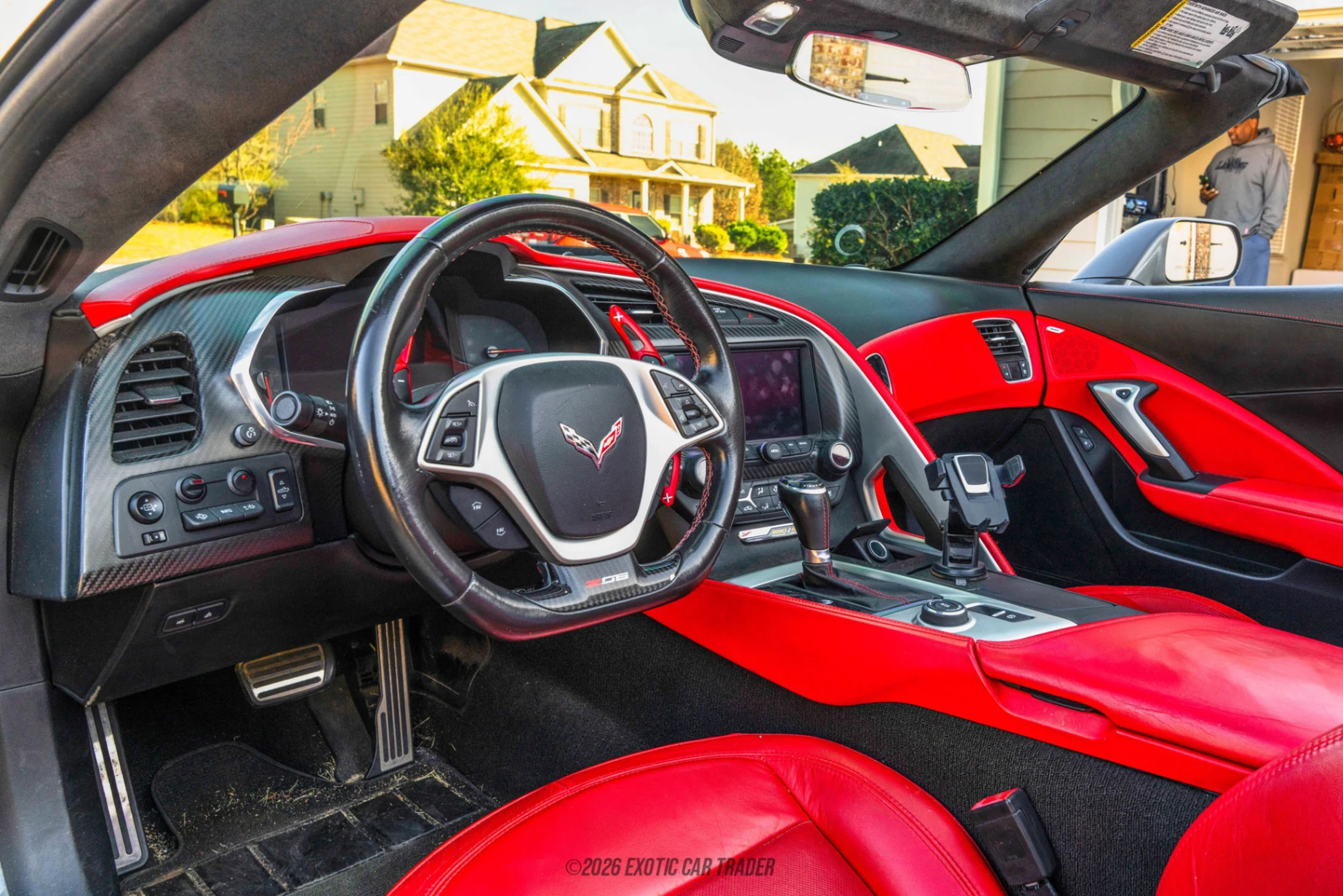 The exterior of the 2016 Chevrolet Corvette Z06 is finished in a striking Shark Gray, a color that exudes sophistication and athleticism. This visually compelling car features a sleek, aerodynamic design that enhances its performance capabilities while turning heads wherever it goes. The interior is equally impressive, boasting a rich red color that offers a striking contrast to the exterior. High-quality materials and an array of modern technologies provide both comfort and functionality, ensuring an engaging driving experience. With meticulously designed interiors that reflect both craftsmanship and performance, this Corvette strikes an ideal balance for drivers who demand style and efficiency.