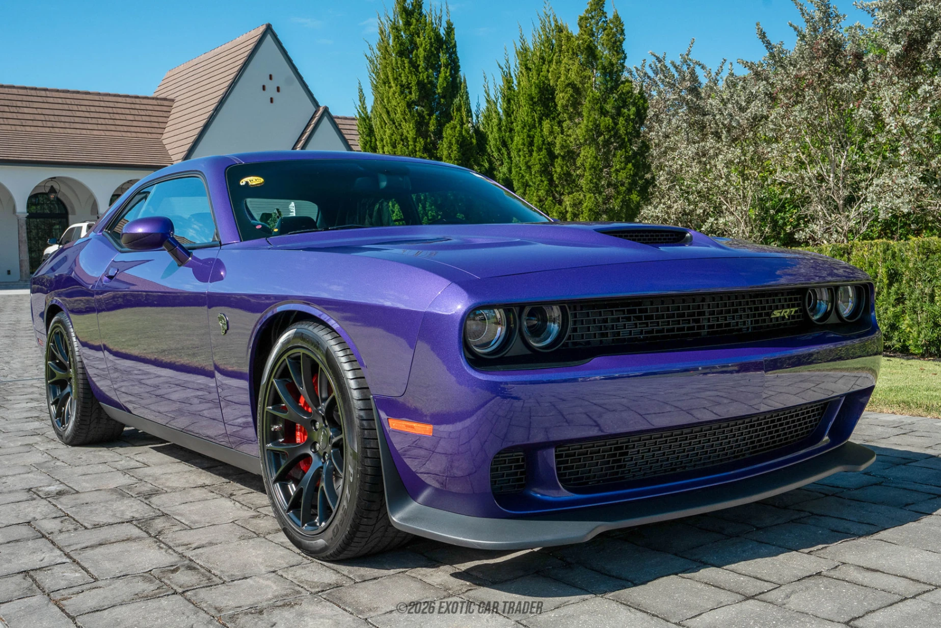 The exterior of this Challenger SRT Hellcat is finished in Plum Crazy Pearlcoat, one of Dodge’s most recognizable and desirable heritage colors. The car retains its factory stance and appearance, riding on Pirelli P Zero summer tires and featuring Hellcat-specific badging, functional hood scoops, and aggressive bodywork that defined the model’s menacing presence. The optional power sunroof adds a subtle luxury touch while maintaining the car’s factory-correct configuration. The interior of this Challenger SRT Hellcat is finished in black and features Laguna leather performance seats with SRT-embossed logos. With essentially no wear due to the ultra-low mileage, the cabin presents as new and includes factory features such as steering wheel-mounted shift controls, a leather-wrapped shift knob, and Hellcat-specific trim throughout. This interior remains untouched and unmodified, preserving the authenticity collectors value most.
