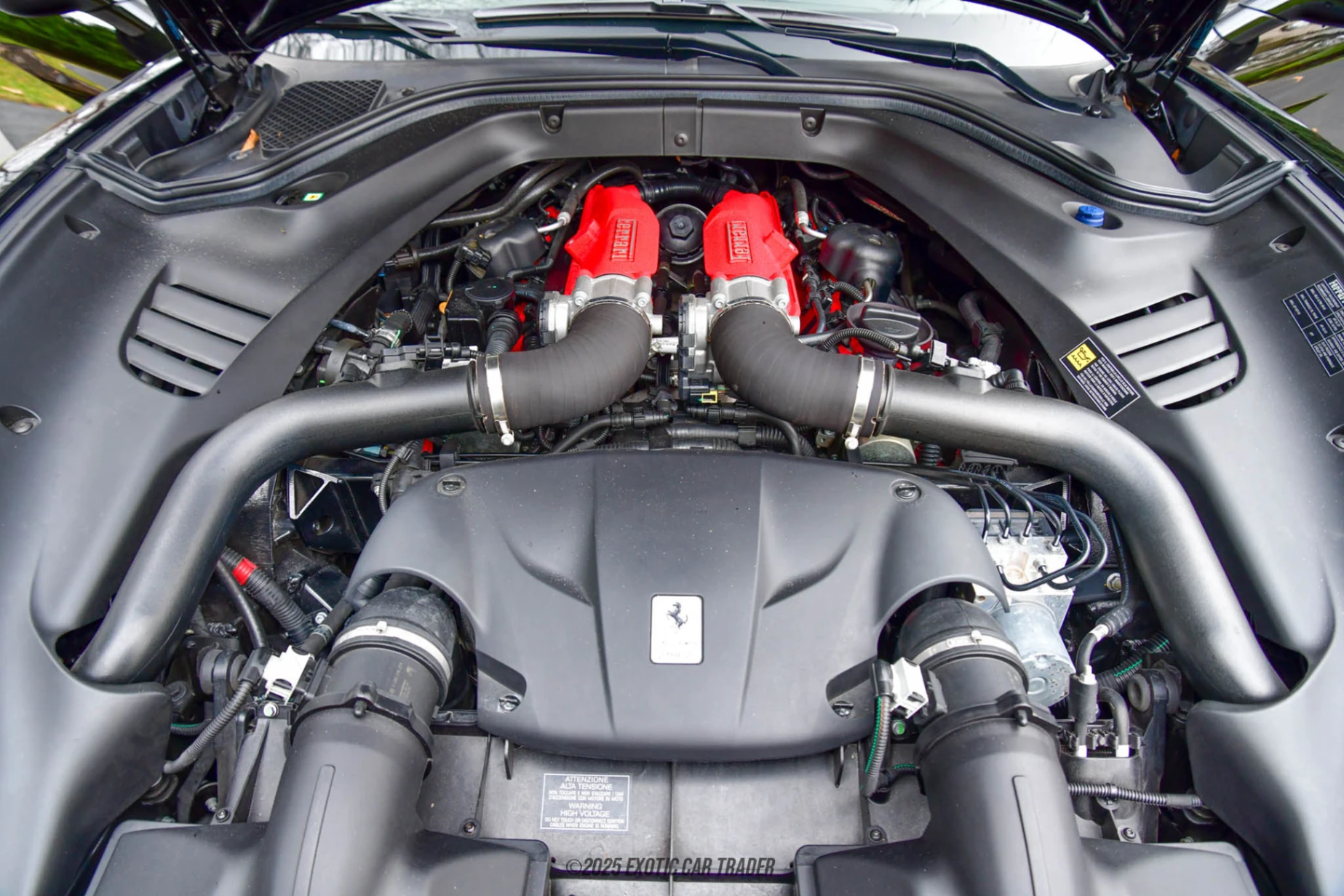 Power comes from Ferrari’s 3.9-liter twin-turbocharged V8, delivering strong low-end torque and a linear powerband through a 7-speed dual-clutch transmission driving the rear wheels. Carbon-ceramic brakes provide confident stopping power, while the chassis is tuned to deliver both composed highway manners and engaging performance when driven enthusiastically. The result is a Ferrari that remains accessible and refined in daily use while still offering the sound, responsiveness, and driving involvement expected from the marque.