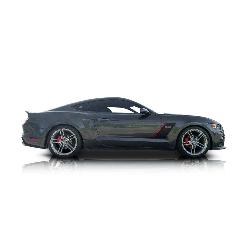 This 2016 Ford Mustang GT Roush Stage 3 is a fully serialized Roush-built supercharged Mustang, delivering well north of 670 horsepower thanks to the signature Roush TVS 2.3L supercharger. Wearing serial number 16-0946, this RS3 represents the highest-performance Roush trim for 2016, combining factory Coyote 5.0L power with extensive Roush enhancements including aerodynamic upgrades, a full performance suspension, exclusive wheels, and a hand-built Roush power package. With its Magnetic Metallic exterior and red Roush graphics, the car presents as a serious performance machine with unmistakable tuner pedigree.