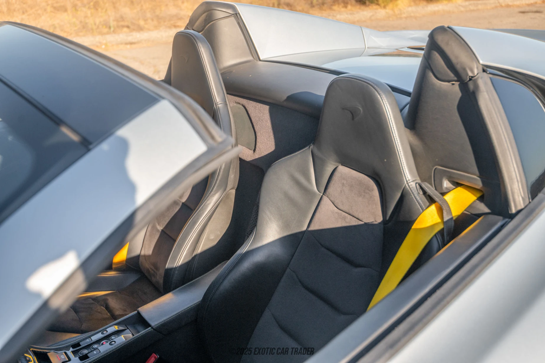 One look at this 2016 McLaren 650S Spider and you’ll instantly see its racing intent. It features a stunning shape, with signature McLaren headlights up front, and air intakes on the side funnelling air into the engine compartment. You’ll also find stealth-finish forged sport wheels, behind which you’ll see yellow callipers that hug the carbon ceramic brakes. The Stealth Pack and carbon fiber side panels underline its motorsport-inspired character. Inside, the Carbon Black Alcantara and leather interior is accented with contrast stitching on the dashboard and carbon fiber sill panels. Soft-close doors add a touch of refinement, while branded floor mats and McLaren’s meticulous detailing reinforce the car’s dual character as both exotic and usable.