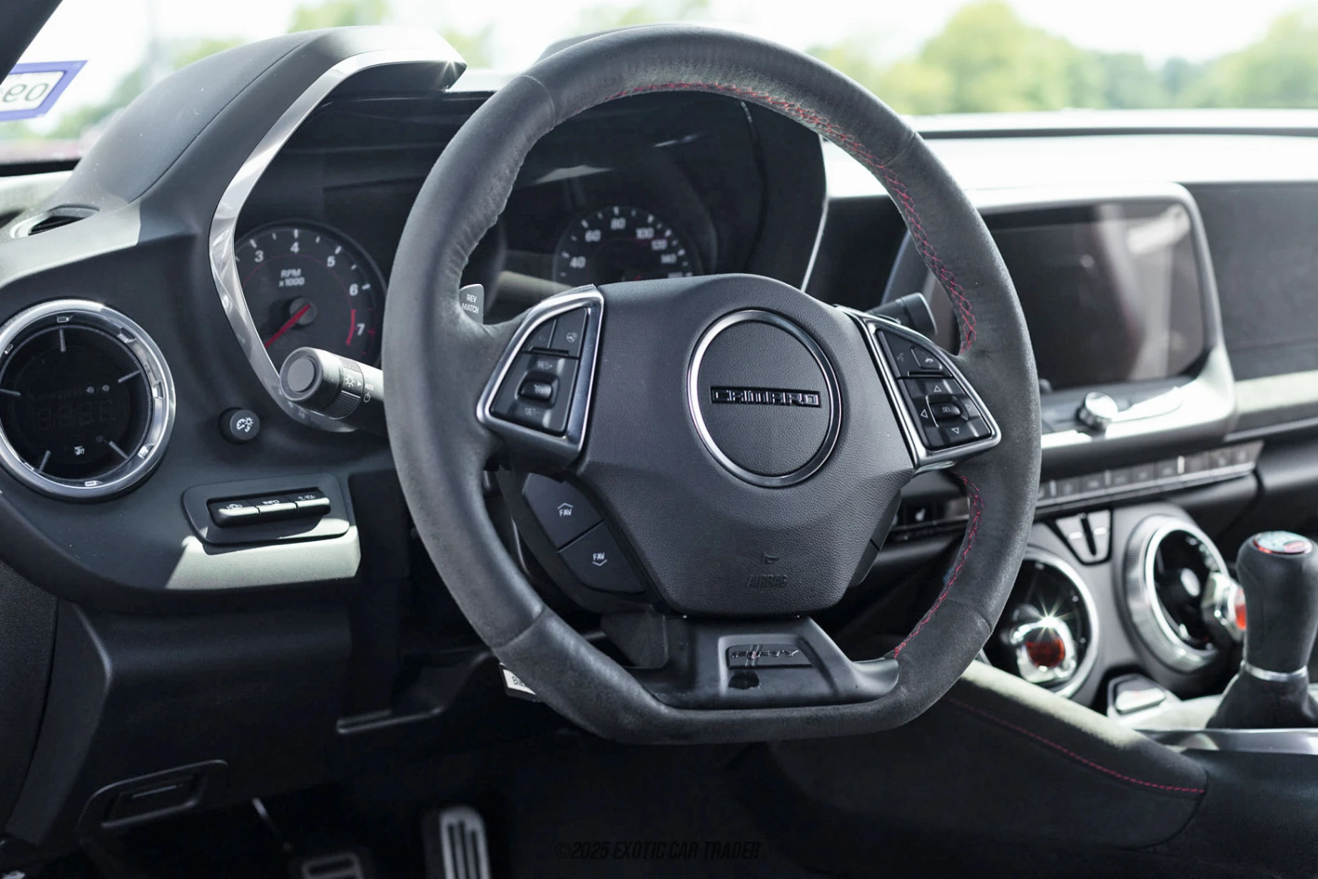 If the exterior and interior of this 2017 Chevrolet Camaro ZL1 raised your eyebrows, its performance will most definitely sweep you off your feet. Pop open the hood, and what you will find is a supercharged 6.2L V8 powerhouse that has been built to perfection with a long list of reported upgrades. To start off, the current owner reports a Magnuson 2650 Supercharger Kit (Ported), LMR 5″ Cold Air Induction System, 103mm Billet Throttle Body, Supercharger Drive Damper Pulley, Supercharger Drive Belt, Connection Pipes with High-Flow Catalytic Converters, Upgraded Low Side Fuel System, Spark Plugs, Spark Plug Wires, LT1/LT4 Dry Sump Damper, LMR CNC-Ported LT4 Cylinder Heads, HD Stainless Steel Exhaust Valves, Bronze Valve Guides, LMR Stage II Camshaft Package, LMR Custom-Grind Camshaft (with Fuel Lobe), Double Valve Spring Kit, LMR Engine Management Calibration - the list goes on, and this cars performance is really best experience in person. All this thunderous performance is channeled to its rear wheels through another tasteful feature - a manual transmission giving you complete control of all its performance.