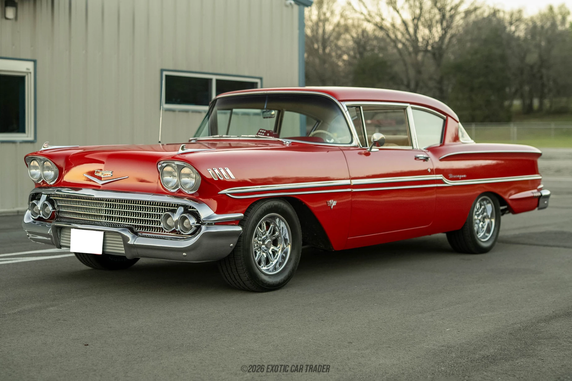 The 1958 Chevrolet Biscayne represents a unique chapter in Chevrolet’s design history, combining bold late-50s styling with full-size American presence. This particular example has been transformed into a well-executed custom restomod, blending classic aesthetics with meaningful performance and comfort upgrades. Finished in striking Torch Red over a bespoke Tan leather interior, the car delivers both show-quality presentation and modern usability. Under the hood lies a massive 454ci big block V8, paired with a Muncie 4-speed manual, offering a true old-school driving experience with enhanced reliability. Built to be driven and enjoyed, this Biscayne is equally suited for cruising, shows, and long highway trips thanks to its thoughtfully chosen 3.08 rear gearing.