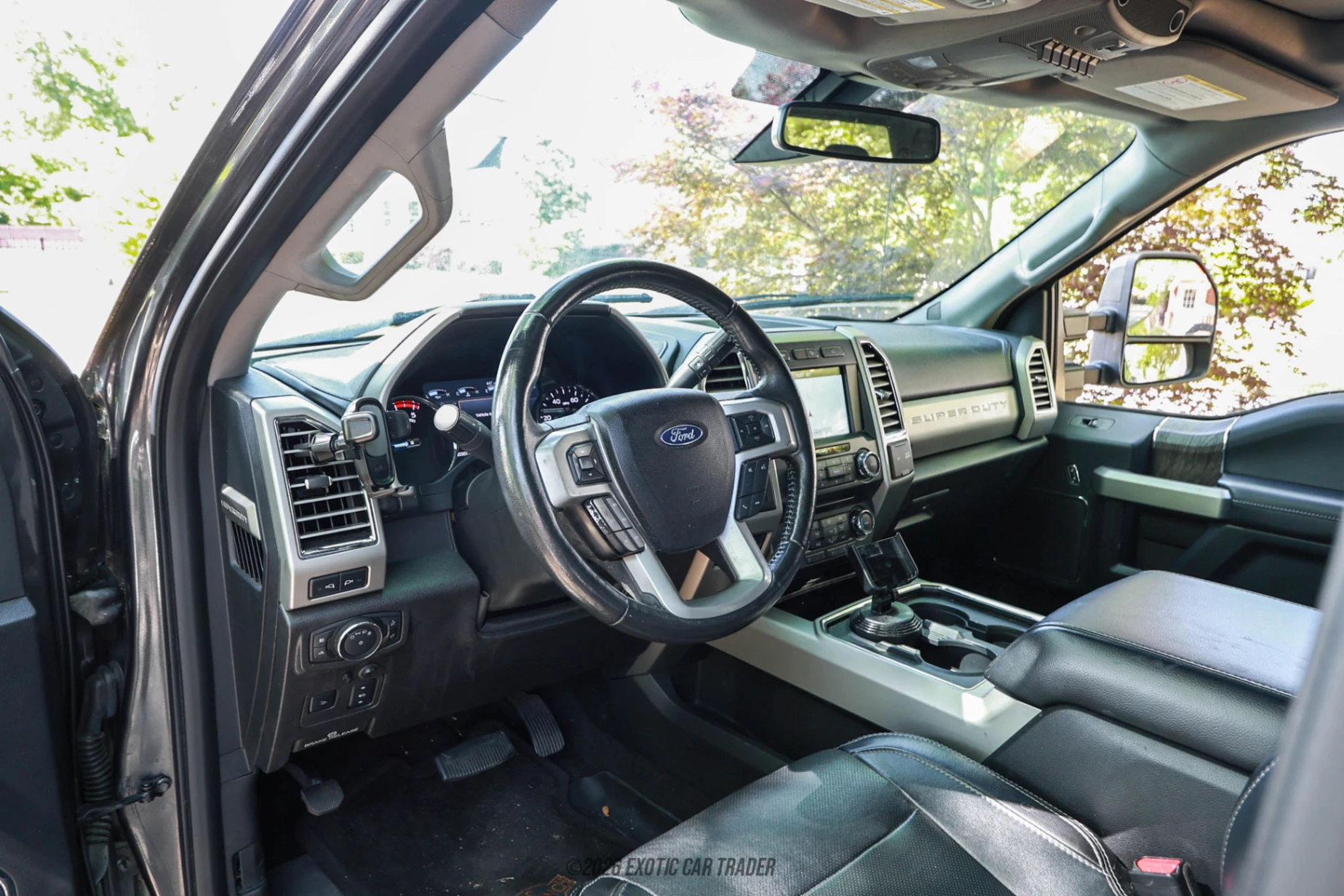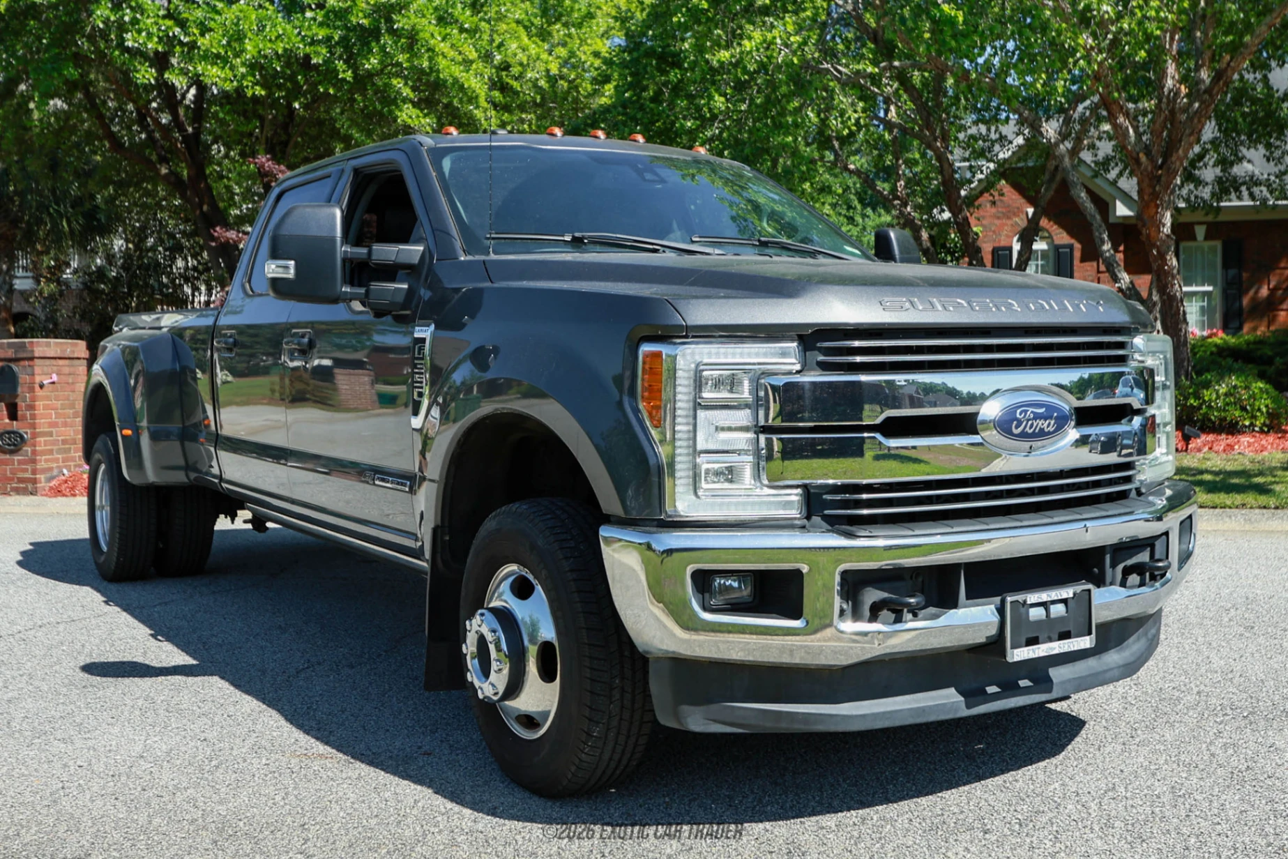 The exterior of this 2017 Ford F-350 Super Duty Lariat DRW is finished in Magnetic, a sleek and modern metallic gray that complements the truck’s bold and purposeful design. The dual rear wheel setup immediately signals its heavy-duty capability, while features such as quad beam LED headlamps and power running boards enhance both visibility and accessibility. Equipped with the FX4 Off-Road Package, skid plates, and all-terrain tires, this truck is ready to handle challenging terrain just as confidently as it handles highway towing. Additional functional highlights include the tailgate step, LED box lighting, and extensive trailering support systems that make it a highly practical and versatile pickup. The interior of this 2017 Ford F-350 Super Duty Lariat DRW is trimmed in Black leather and configured with a 40/console/40 seating layout, offering both comfort and flexibility. The Lariat Ultimate Package brings premium features such as a navigation system, a twin panel moonroof, and an upgraded technology interface centered around Ford’s SYNC 3 infotainment system. Heated and cooled front seats, along with heated rear seats, ensure comfort for all passengers, while features like the universal garage door opener, remote start system, and advanced driver assistance technologies such as BLIS add convenience and safety. The cabin is spacious and thoughtfully designed, making it ideal for both workdays and long-distance travel.