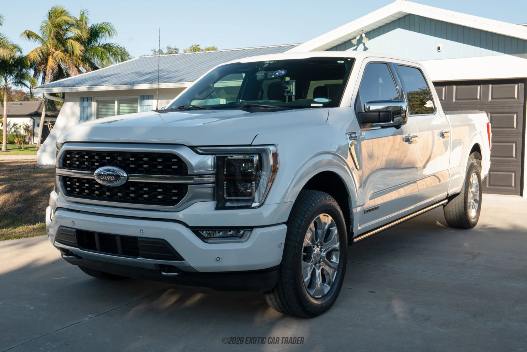 The Ford F-150 has long been America’s benchmark full-size pickup, but the 2022 F-150 4x4 SuperCrew equipped with the PowerBoost hybrid system represents a major evolution of that legacy. By pairing a twin-turbocharged EcoBoost V6 with an electric motor, Ford created a truck that delivers serious torque, improved efficiency, and advanced onboard technology without sacrificing capability. This particular example, showing just over 34,000 miles, is finished in the highly desirable Platinum Series trim under Equipment Group 701A, meaning it sits near the top of the F-150 lineup in terms of luxury and technology. With features such as BlueCruise hands-free driving capability, the FX4 Off-Road Package, Trailer Tow Package, and the B&O Unleashed 18-speaker sound system, this truck blends work-ready toughness with executive-level comfort. It is equally at home towing a trailer, heading off-road, or commuting in refined silence on electric assist.