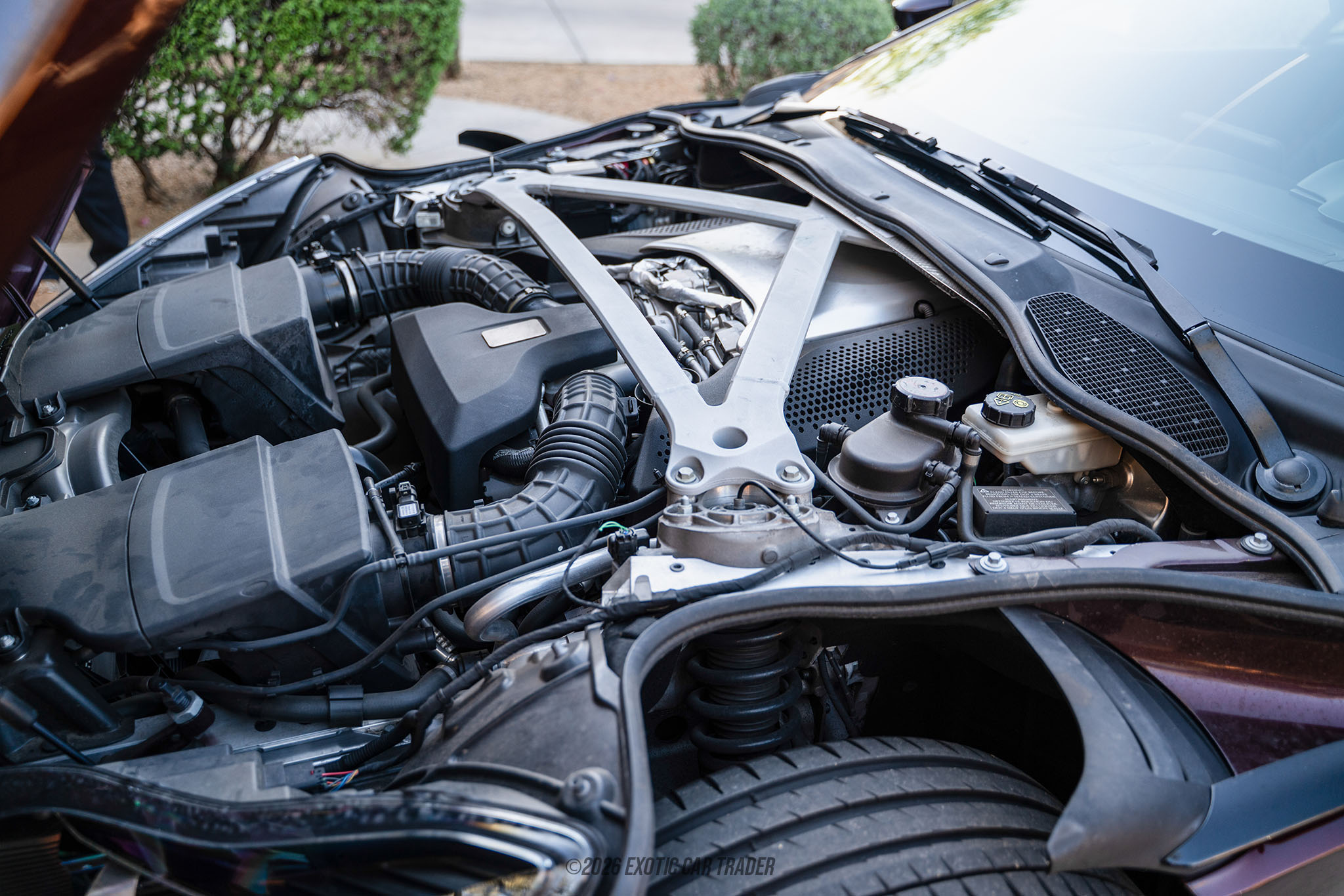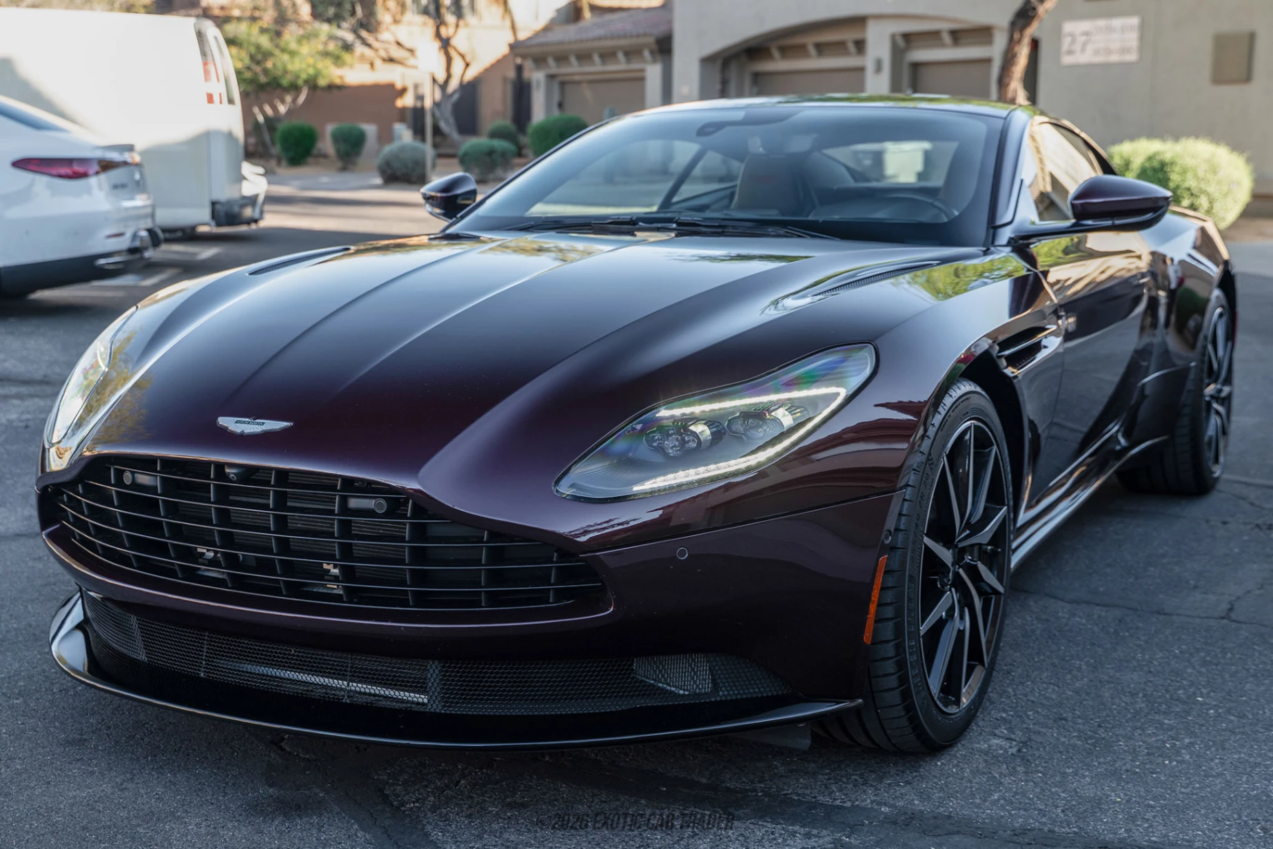 Dressed in a divine red exterior, this 2018 Aston Martin DB11 is one that enhances your driveway game and turns heads as you make your way about. A walk around, and the black body pack and Dark Exterior Finisher Pack blend into that allure of the exterior color. Bringing stance and a statement is a set of 20” 10-Spoke Directional Gloss Black Wheels. Be it a mission or a comfortable cruise, luxury is something Aston Martins have held close to heart. Step into the obsidian black interior of this, and the plethora of tasteful features add luxury and uniqueness as well. The current owner reports Q Brogue Detailing for a refined feel, contrast stitching, embroidered Aston Martin wings on the headrest, a Dark Jewellery Pack for a more stealthier outlook, 360-Degree Camera, Blind Spot Monitoring, Heated & Ventilated Front Seats and Dyed Tamo Open Pore Trim Inlay to bring wood into all that luxury.