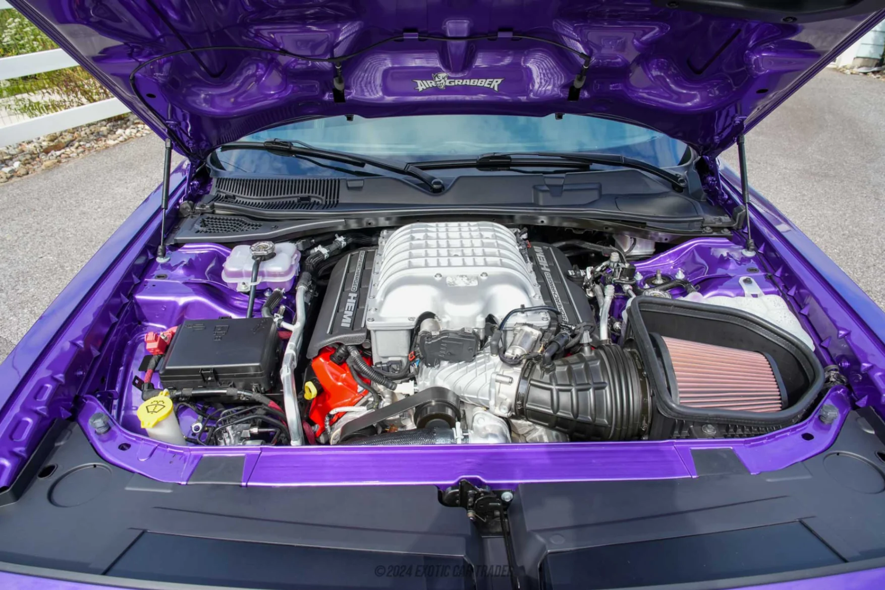 Muscle cars have to sport a certain level of aggression to keep up with their long line up of thunderous performance and appeal, this 2018 Dodge Challenger SRT Demon with its unique Plum Crazy Pearl exterior does this job to perfection and more. A walk around this modern American muscle car and what you will find is demon badging and rear spoiler finished in black, a front lip finished in yellow and a set of SRT wheels that house a set of red Brembo brake calipers to match. While it might be a performance focused machine, the black interior cabin of this 2018 Dodge Challenger SRT Demon sure makes for a lovely place to be in. Step inside and you are treated to Demon embossed leather seats for you and your passengers, speaking of passengers, there is even a rear seat for more friends and family to tag along. A look around and the low mileage starts to make sense, the interior cabin is in factory fresh condition with all these machines' interior components accounted for.