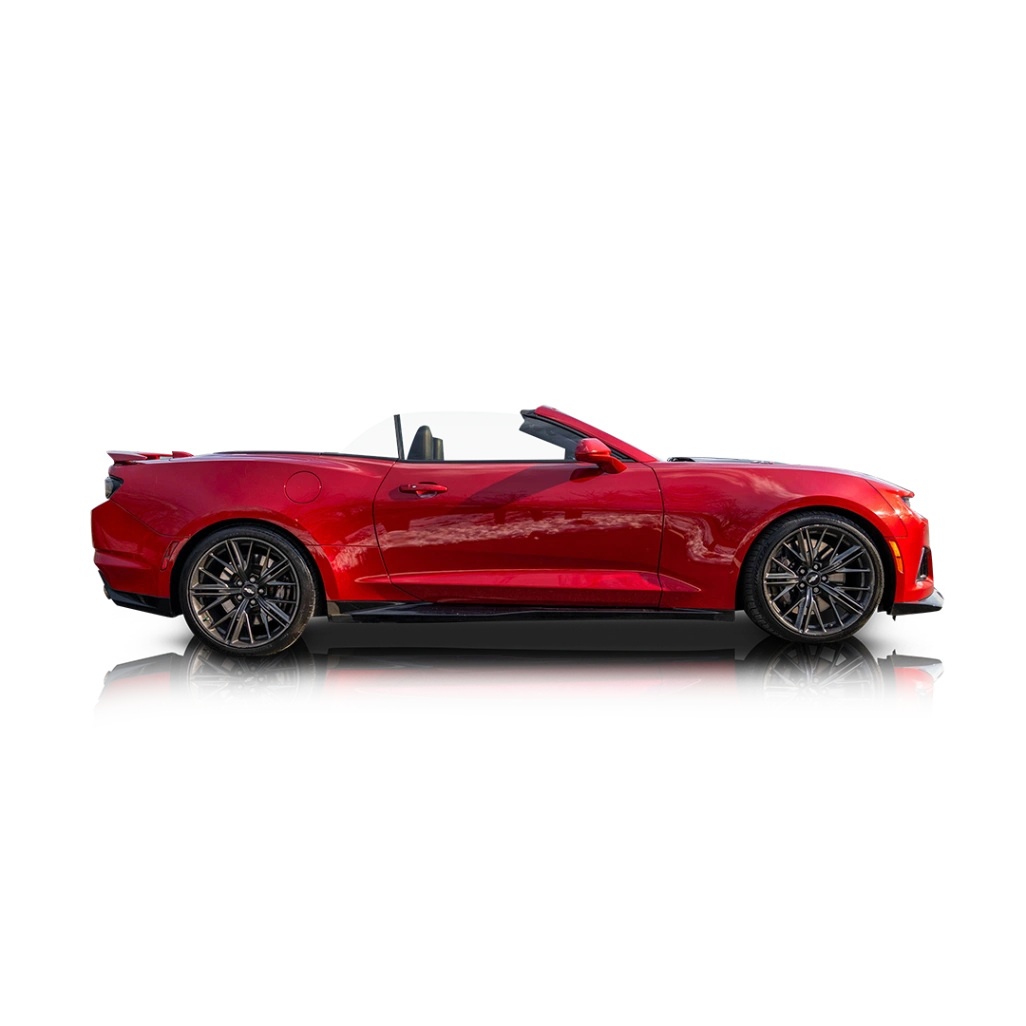 On the outside, the ZL1 Convertible is distinguished by its aggressive aerodynamic design, LED lighting, 20-inch forged aluminum wheels, and signature ZL1 styling cues. The power-operated convertible top with a hard tonneau cover allows seamless transitions between coupe-like refinement and open-air driving. Inside, the cabin features heated and ventilated Recaro performance front bucket seats trimmed in leather and suede, carbon fiber interior accents, and a heated steering wheel. Technology highlights include an 8-inch Chevrolet Infotainment 3 Plus touchscreen with navigation, Bose premium audio, wireless charging, head-up display, and a digital rearview mirror, creating a cockpit that is both performance-oriented and luxury-focused.