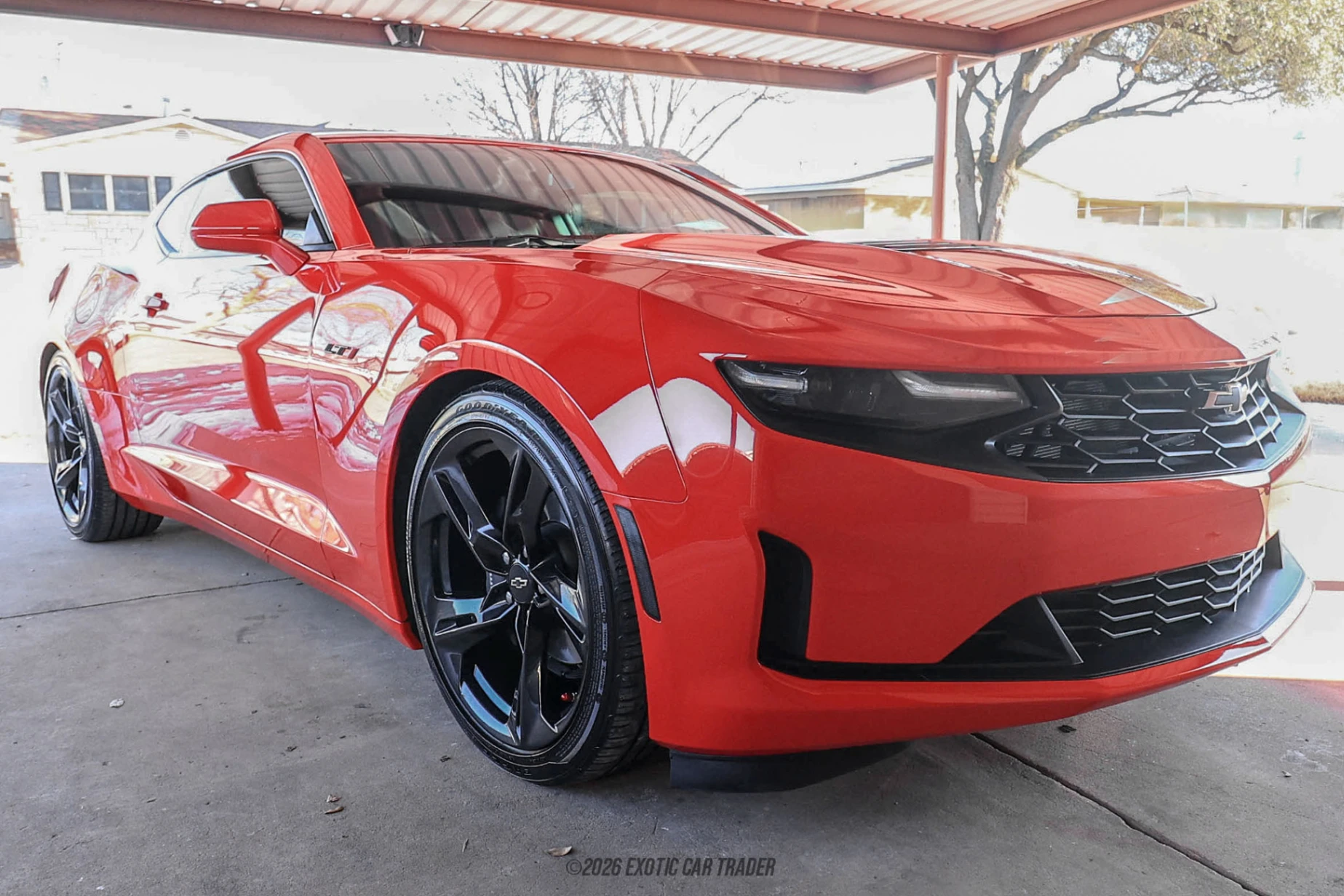 The exterior of this 2020 Chevrolet Camaro LT1 Coupe is finished in Red Hot, a bold and unmistakably Chevrolet performance color that highlights the Camaro’s sharp body lines and wide stance. It rides on 20-inch 5-spoke Carbon Flash painted aluminum wheels that add a darker, performance-focused contrast against the bright red paint. A decklid-mounted lip spoiler enhances the rear profile, while the front license plate bracket and factory trim maintain a clean yet purposeful appearance. The overall look is aggressive without being overdone, staying true to the LT1’s performance-first identity. The interior of this 2020 Chevrolet Camaro LT1 Coupe is trimmed in Jet Black and centers around a driver-focused cockpit. The LT1 Preferred Equipment Group provides the standard comfort and convenience features expected in a modern Camaro, while paddle shift manual controls allow for more engaging gear changes when desired. The remote vehicle starter system adds convenience, and the overall cabin layout keeps the emphasis on the driving experience, blending modern technology with classic muscle car character.The black interior of this 2020 Chevrolet Camaro 1LT is a four-seat affair with leather upholstery and plenty of convenience features. There’s an analog gauge cluster with a multi-information display, framed by a multifunction steering wheel. If you wish to manually select gears, you can do so via the paddle shifters, or activate the cruise control for a peaceful drive. There’s automatic climate control with an interesting control manner by which you twist the external perimeter of the center air vents to adjust temperature. There’s also a full infotainment suite with smartphone connectivity, a decent speaker system and a surprisingly accommodating trunk for what is, in essence, a sports car. All this highlights the fact that, with relatively few compromises, this could be your family car.