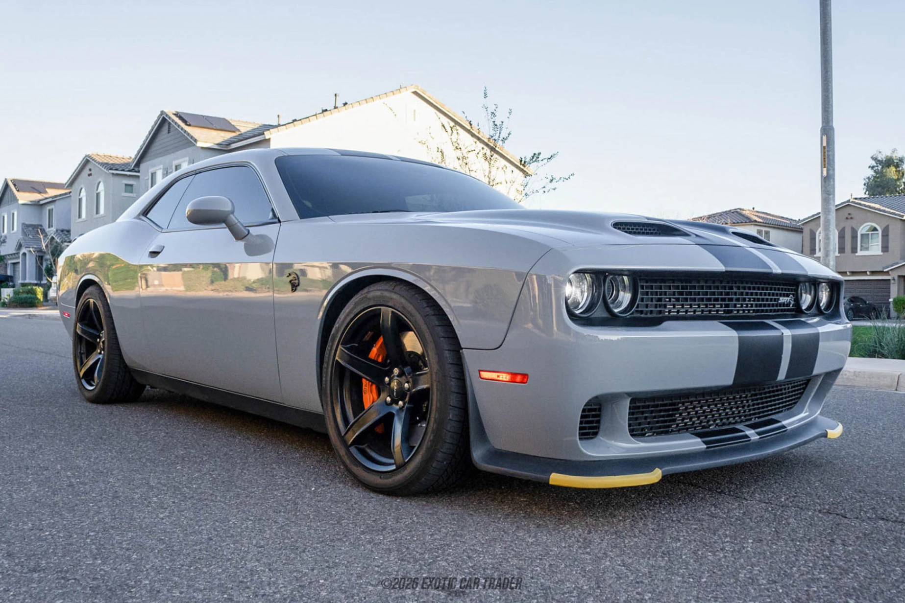 Mechanically, this Challenger is powered by a supercharged 6.2L HEMI V8 featuring electronic fuel injection, delivering immense power to the rear wheels through an 8-speed automatic transmission. Redeye-specific enhancements include strengthened engine internals, increased boost, an after-run chiller, and performance-tuned cooling systems designed to withstand repeated high-performance driving. Additional factory performance features such as adaptive damping suspension, electronic limited slip differential, launch control, line lock, and active exhaust allow the driver to tailor the car’s behavior for street or strip use. As a result, this Redeye delivers supercar-level acceleration while retaining the reliability and refinement expected from a factory-engineered package.