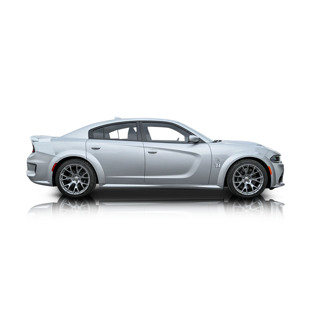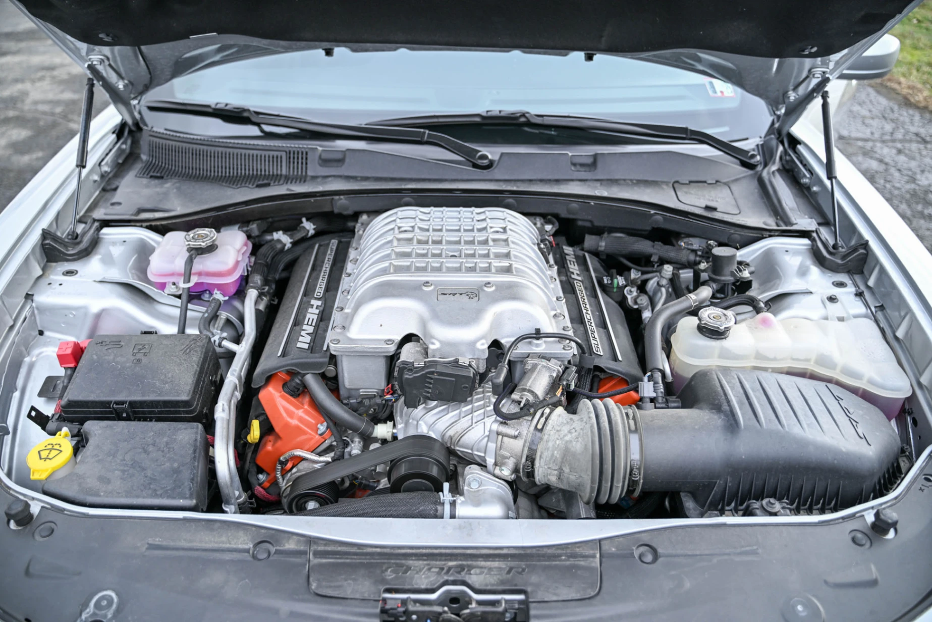 This stock 2020 Dodge Charger SRT Hellcat Daytona 50th Anniversary edition is powered by a 6.2L V8 Supercharged Hemi engine that is married to a ZF 8-speed automatic transmission. It utilizes a high-performance engine controller and enjoys a power boost to a reported 717 HP, which is 10 more than standard, and 650 lb-ft of torque. Sources claim that this Hellcat is capable of 0-60 mph in around 4.0 seconds.