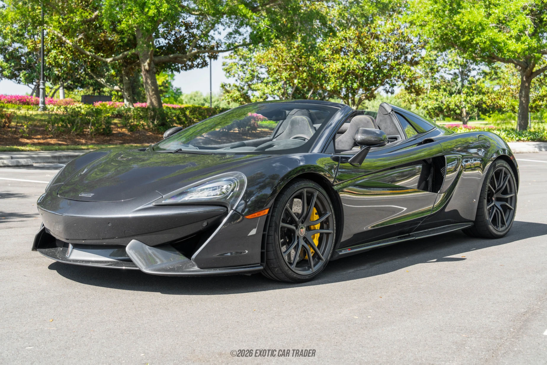 The 2018 McLaren 570S Spider delivers an exhilarating combination of supercar performance and open-top driving, making it one of the most engaging offerings in McLaren’s Sports Series lineup. With under 31,000 miles, this example has been enjoyed while still maintaining strong overall condition and presence. Finished in Storm Grey over a Carbon Black Alcantara interior with Sicilian Yellow contrast stitching, it offers a striking yet tasteful specification. Equipped with desirable options such as the Carbon Fiber Interior and Exterior packages, Bowers & Wilkins premium audio, and carbon ceramic brakes, this 570S Spider balances lightweight performance with luxury and visual appeal.
