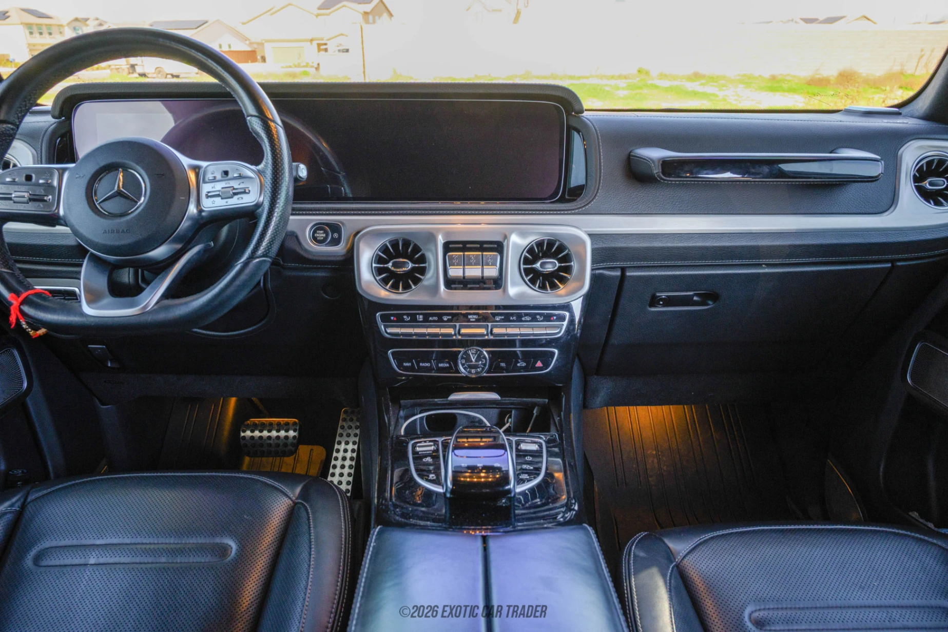 The exterior of this 2020 Mercedes-Benz G 550 4MATIC is finished in designo Night Black Magno (056), a factory matte paint that amplifies the G-Class’s angular architecture and upright stance. The AMG Line package enhances the look with sportier bumpers and trim elements, while the 20-inch AMG multi-spoke alloy wheels add a muscular, performance-oriented edge. Its wide, flat body panels, exposed door hinges, and signature LED lighting retain the unmistakable DNA that has made the G-Class a global status symbol for decades. The interior of this 2020 Mercedes-Benz G 550 4MATIC is appointed in Charcoal Exclusive Leather and elevated further by the Exclusive Interior Package. The Seat Comfort Package enhances long-distance usability with multi-contour seating and premium adjustability, while the 12.3-inch widescreen instrument cluster integrates seamlessly into Mercedes-Benz’s modern digital cockpit layout. G manufaktur Black Piano Lacquer trim provides a rich, high-gloss contrast against the leather surfaces, reinforcing the handcrafted, bespoke feel that sets the G-Class apart from typical luxury SUVs.