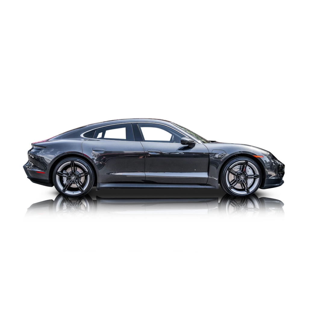 This 2023 Porsche Taycan 4S carries a factory black exterior wrapped in matte black PPF, giving the car a stealth, satin look while protecting the paint beneath. Equipped with the 79.2 kWh performance battery and dual motors, the 4S offers strong acceleration, stable AWD traction, and the refined driving characteristics expected from a modern Porsche EV. The brown leather interior adds warmth and contrast, completing a well-balanced luxury and performance package.