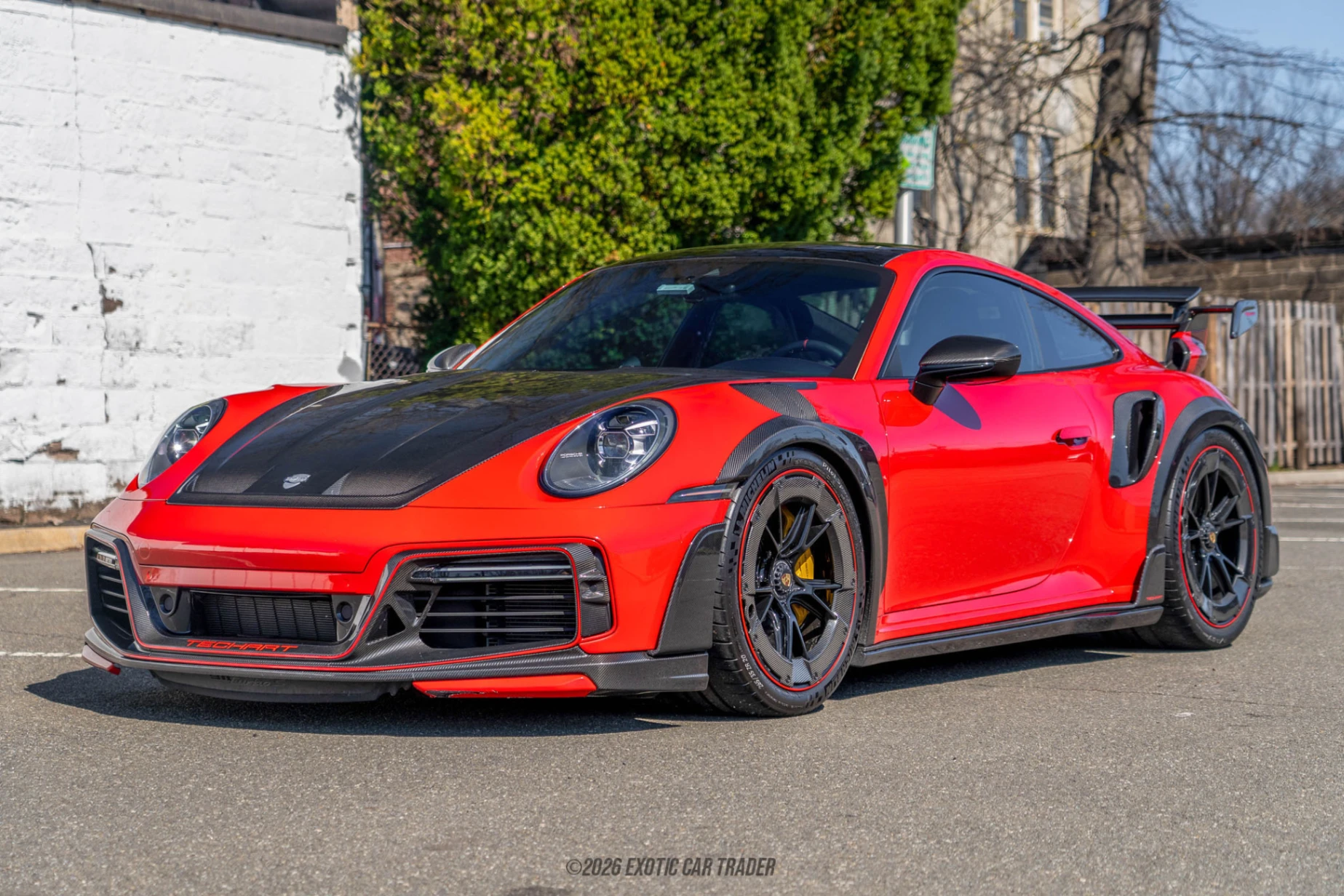 This TECHART GTstreet R America (No. 4 of 10) based on a 2021 Porsche 911 Turbo S Coupe is a meticulously executed, multi-stage build that elevates an already formidable 992 platform into something far more exclusive and purpose-driven. Starting from a ~$230,000 base and now showing just over 16,000 miles, this all-wheel-drive 641-horsepower Turbo S has been transformed into an ultra-rare, collectible limited-production model, with over $475,000 invested into its development. The foundation begins with the full TECHART GTstreet R America package, introducing a comprehensive aerodynamic redesign, carbon-intensive bodywork, factory performance enhancements, and official serial designation. From there, the build evolved into a far more extensive vision, incorporating significant performance upgrades, a fully bespoke interior finished in black leather with Guards Red stitching and houndstooth inserts, and meticulous refinement to ensure seamless integration throughout. Internally referred to as “Lady Sansa,” this example stands apart from both a standard Turbo S and even a typical GTstreet R, representing a one-of-one level execution that is visually striking, mechanically enhanced, and fully supported by documentation. As one of just ten GTstreet R America units, it offers a rare opportunity to own a highly individualized interpretation of TECHART’s flagship program.