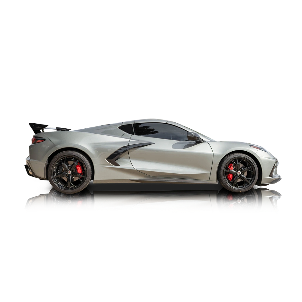 This 2022 Chevrolet Corvette packs a reported 490-horsepower 6.2-liter V8. The unit is mounted behind the passenger cell, in a mid-engined configuration. It can develop up to 465lb-ft of torque and drives the rear wheels. Thanks to the super-quick 8-speed dual-clutch automatic transmission, Chevy claims a 0-60 time of just 2.9 seconds in the right conditions.
